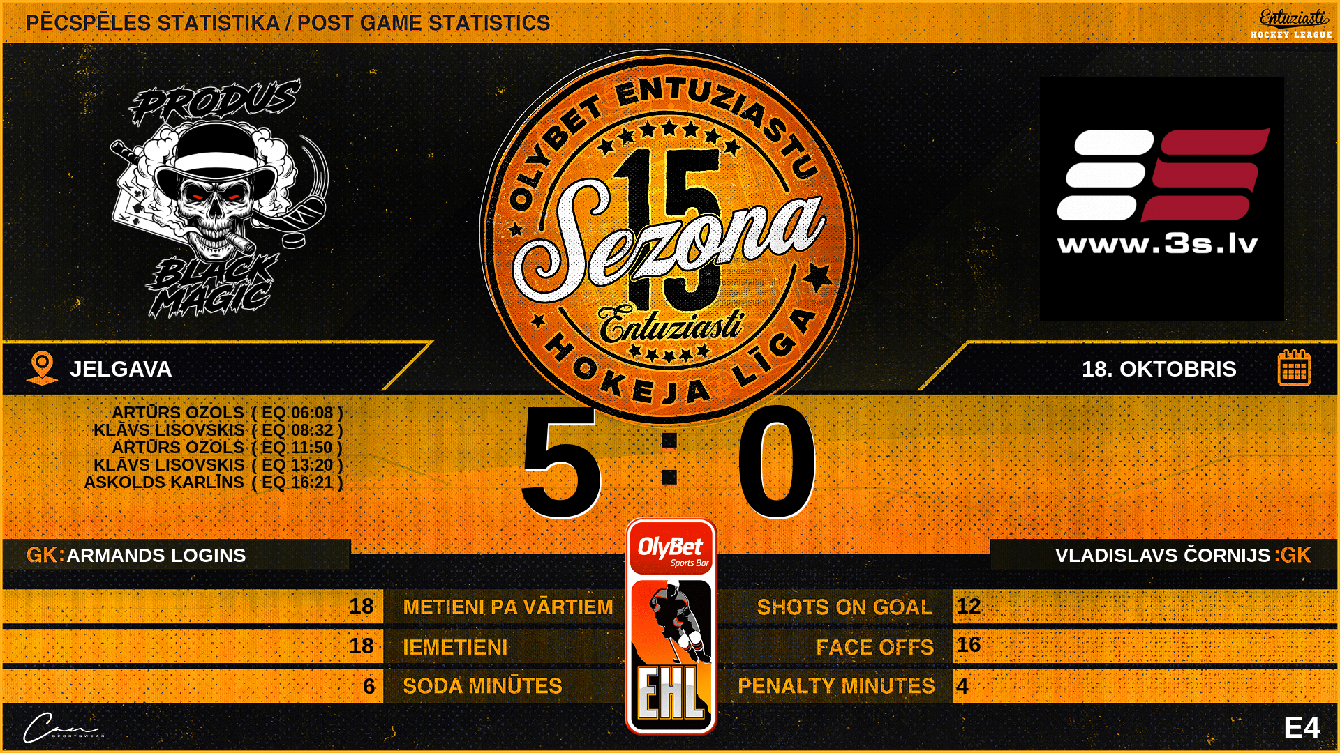 | 13:20 | BMK | Vārti (EQ) | #15 Klāvs Lisovskis, piespēles: #29 Mārtiņš Legzdiņš, #94 Mārtiņš Jansons |