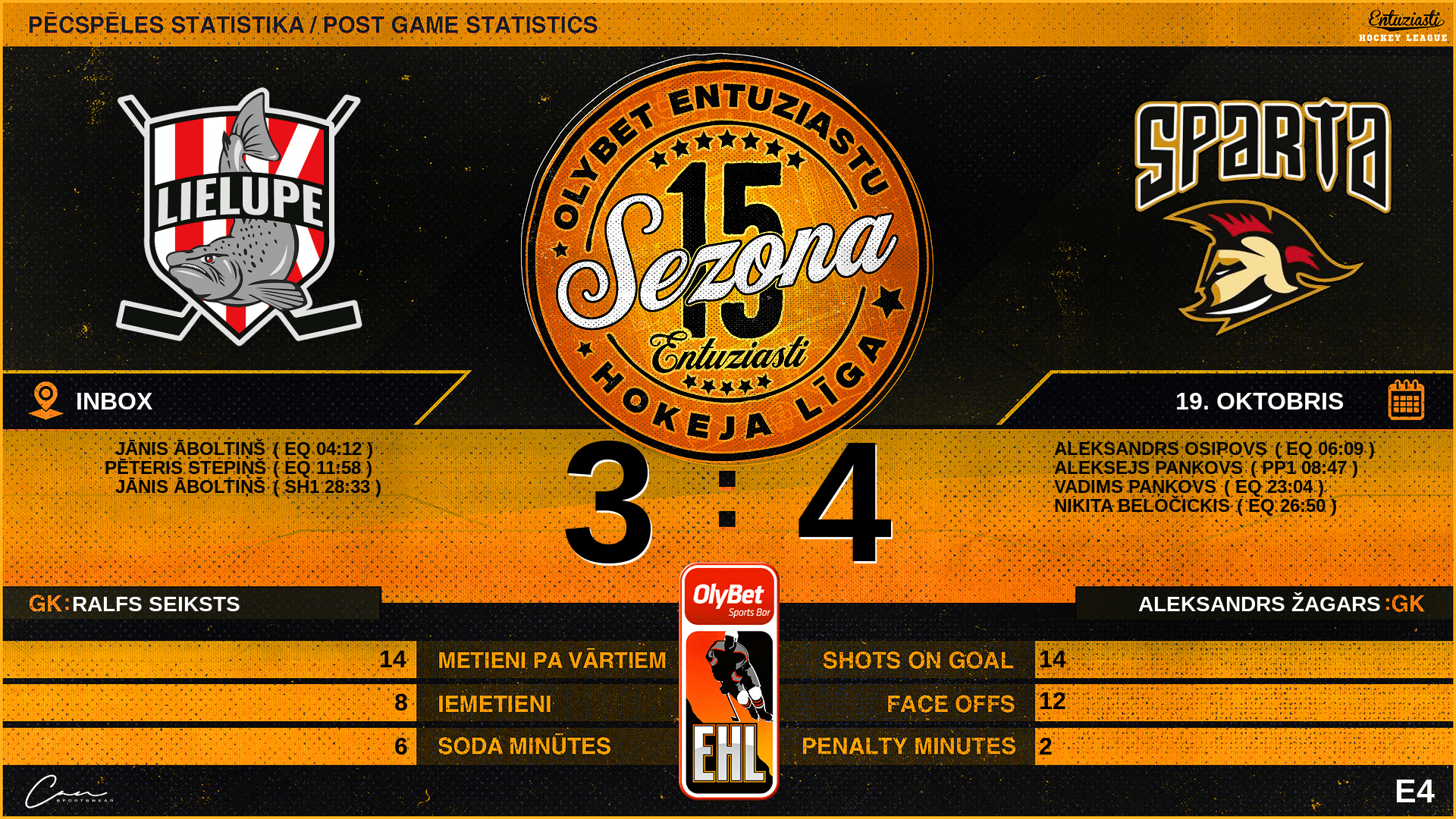 | 11:58 | LLP | Vārti (EQ) | #36 Pēteris Stepiņš, piespēles: #87 Edvards Čerņavskis |