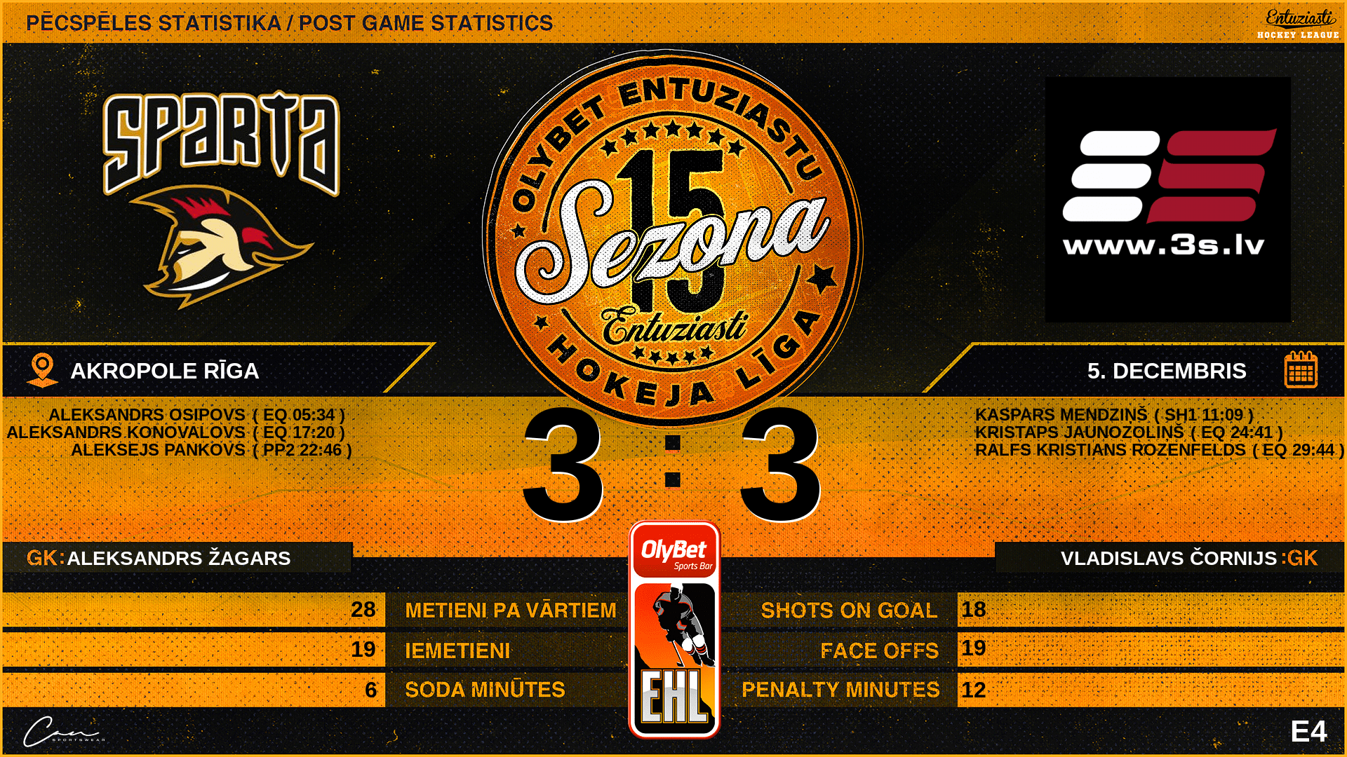 | 18:28 | 3S | Noraidījums | #91 Ēriks Vītoliņš - Roughing (2 min) |