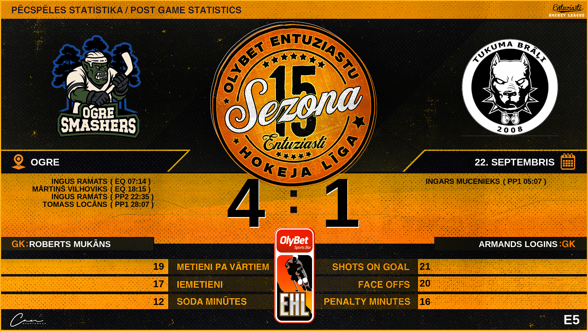 18:15 | SMH | Vārti (EQ) | #3 Mārtiņš Vilhoviks, piespēles: #77 Gatis Bite |