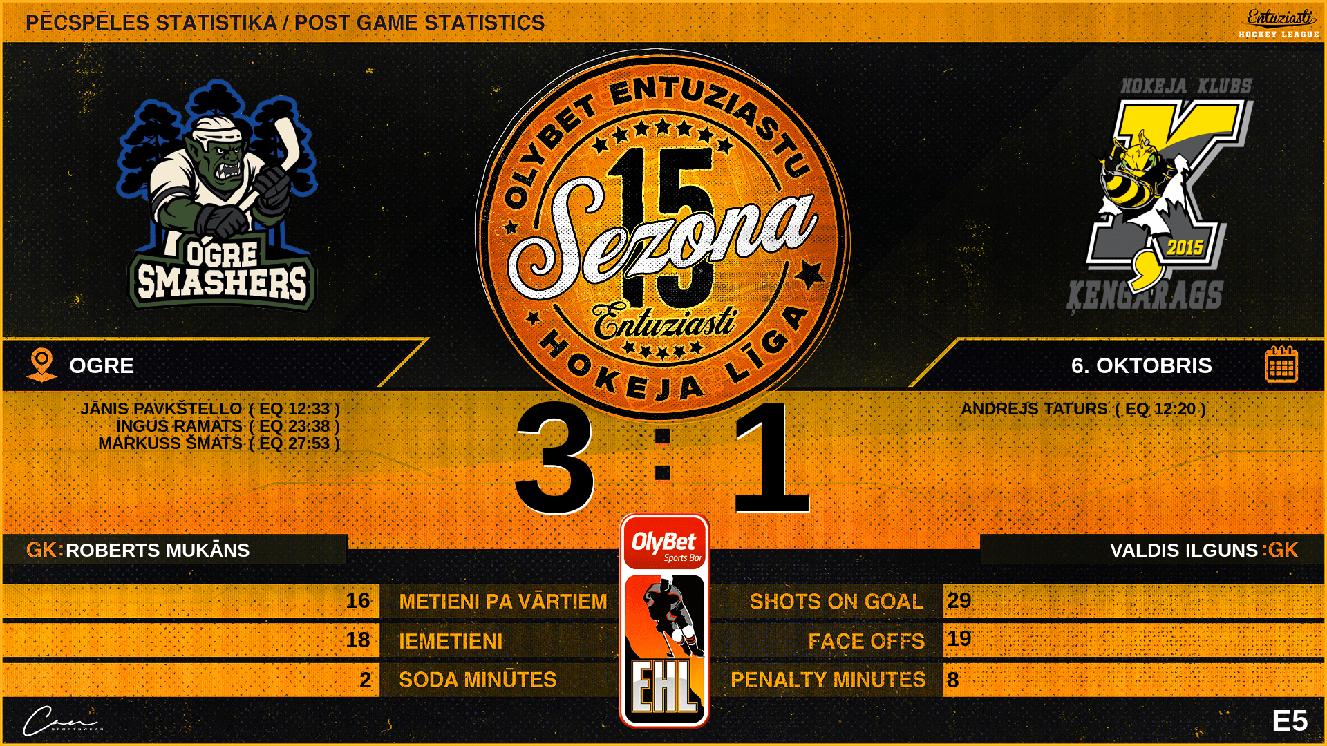12:20 | KNG | Vārti (EQ) | #12 Andrejs Taturs, piespēles: #22 Andis Bleidelis, #31 Artūrs Jermolovičs |