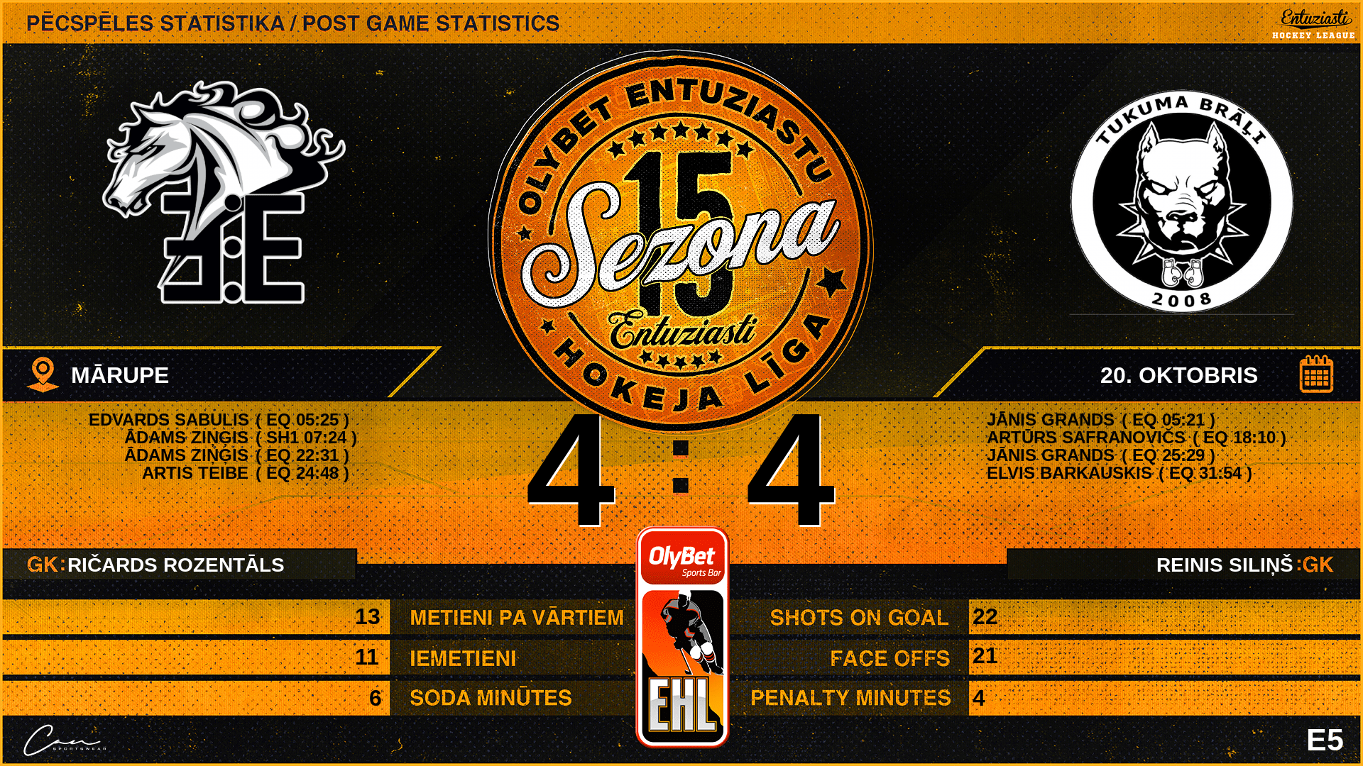 | 25:29 | TB3 | Vārti (EQ) | #24 Jānis Grands, piespēles: #93 Gints Pone, #2 Markuss Vīksna |