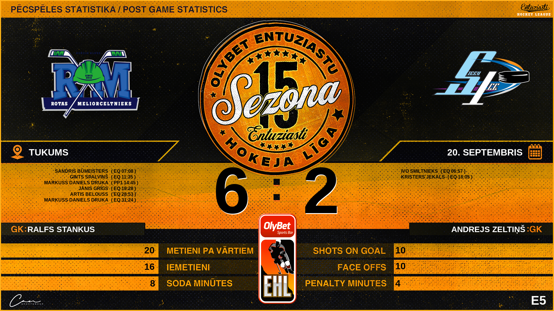 18:05 | STV | Vārti (EQ) | #25 Kristers Jekals, piespēles: #99 Rolands Smilšarājs |