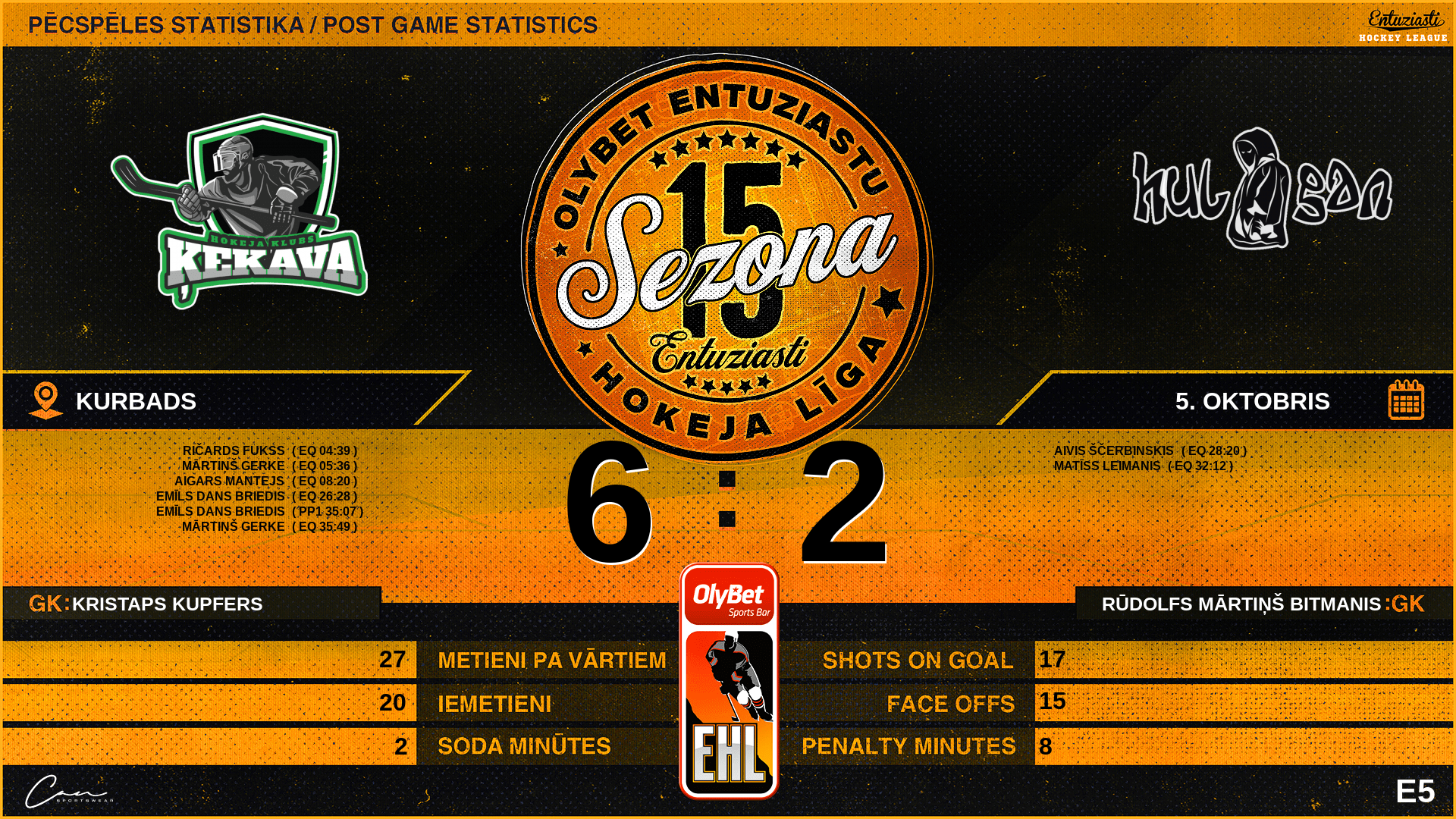05:36 | ĶK1 | Vārti (EQ) | #18 Mārtiņš Gerke, piespēles: #55 Arthur Sekhian |