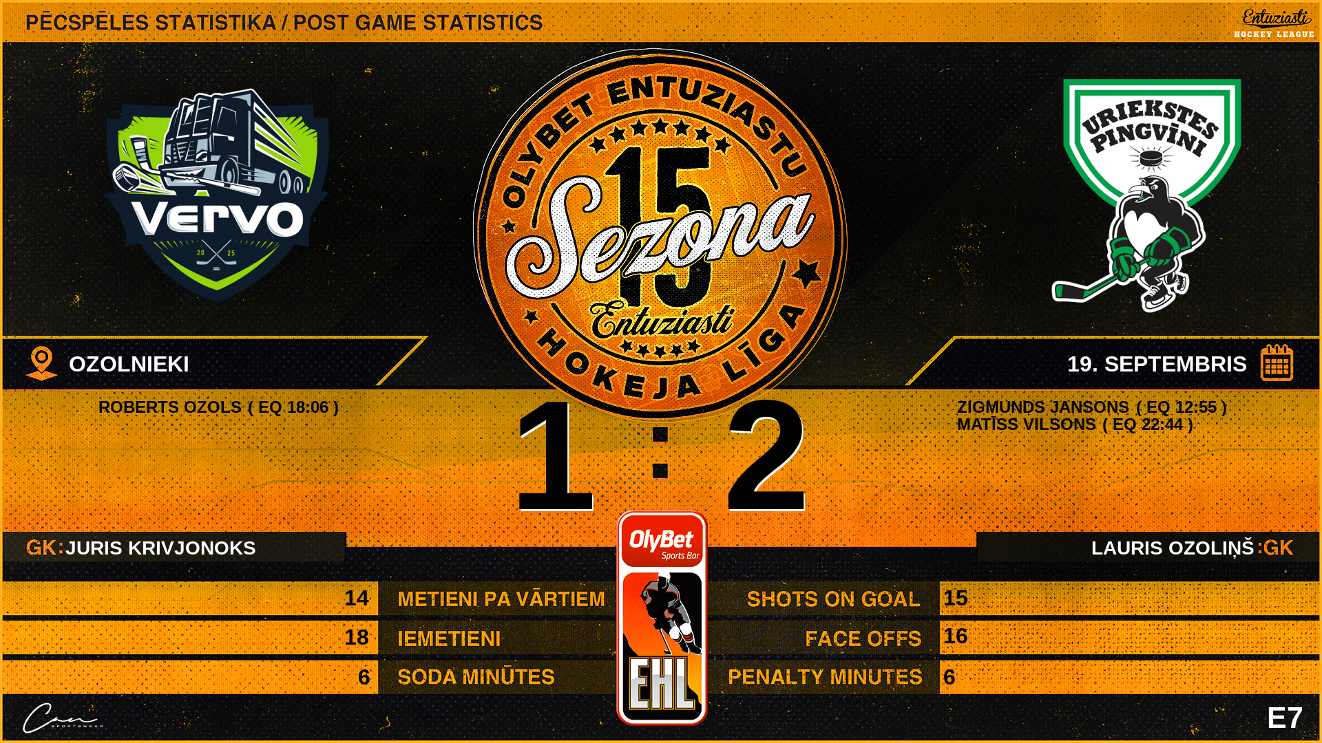 18:06 | VRV | Vārti (EQ) | #70 Roberts Ozols, piespēles: #10 Kristaps Ručevics |
