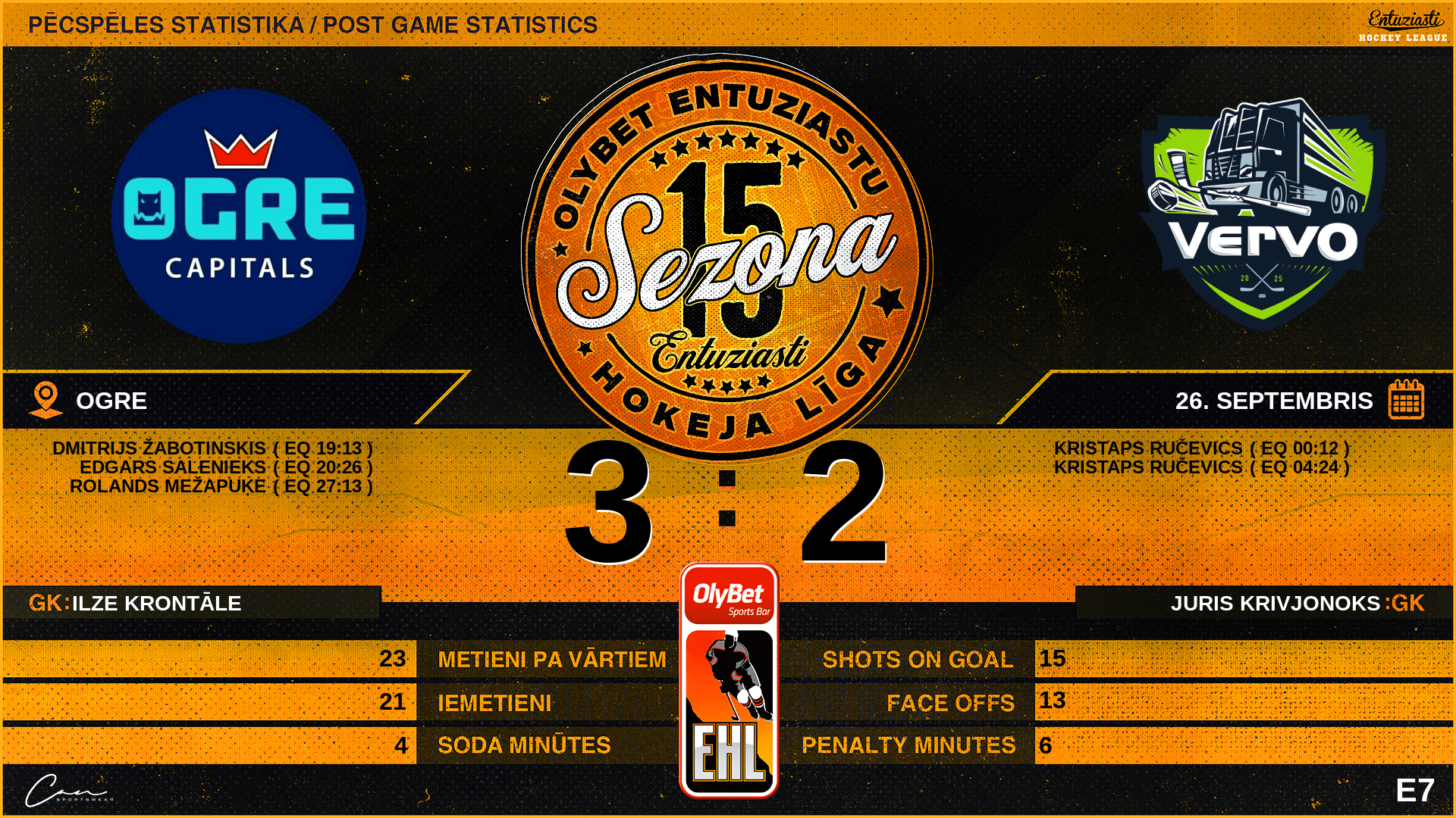 20:26 | OCP | Vārti (EQ) | #22 Edgars Salenieks, piespēles: #5 Rolands Mežapuķe, #24 Kristaps Šaka |