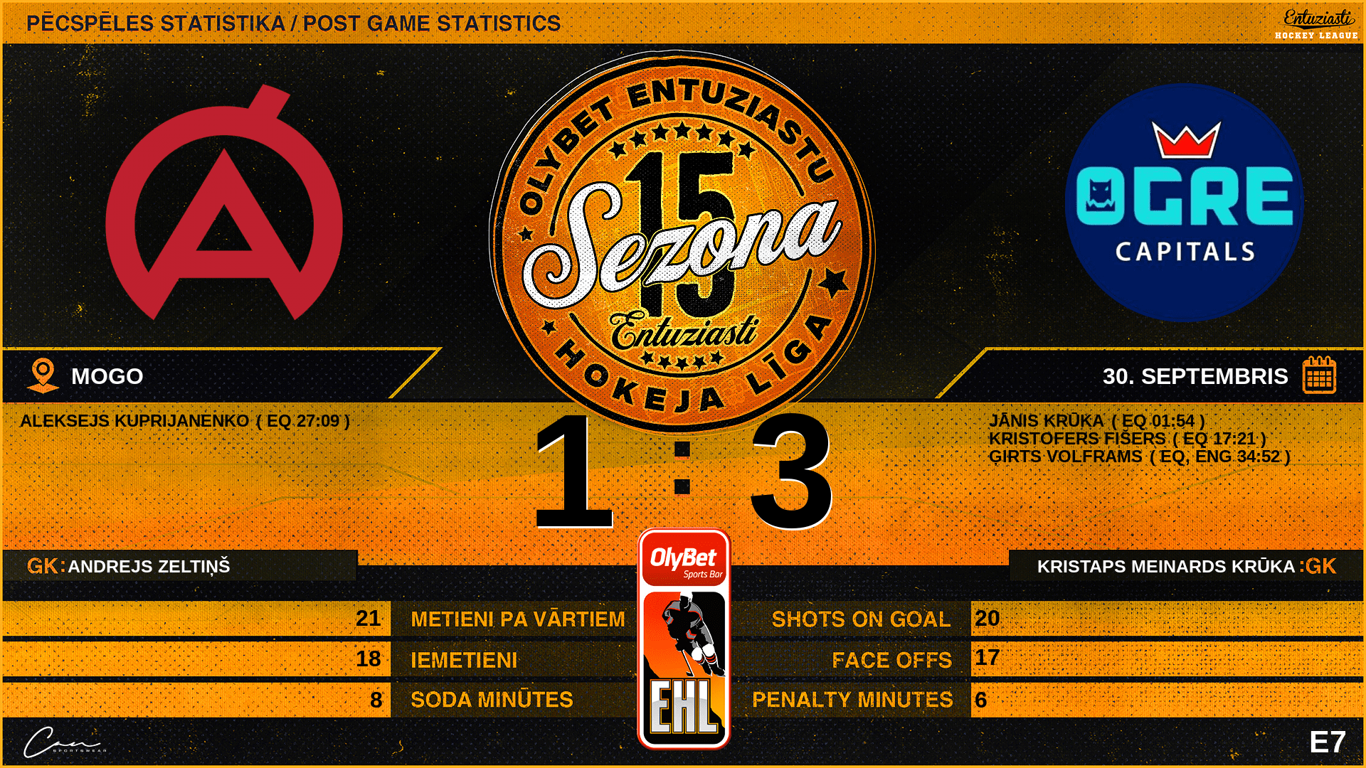 01:54 | OCP | Vārti (EQ) | #97 Jānis Krūka, piespēles: #55 Ģirts Volframs |