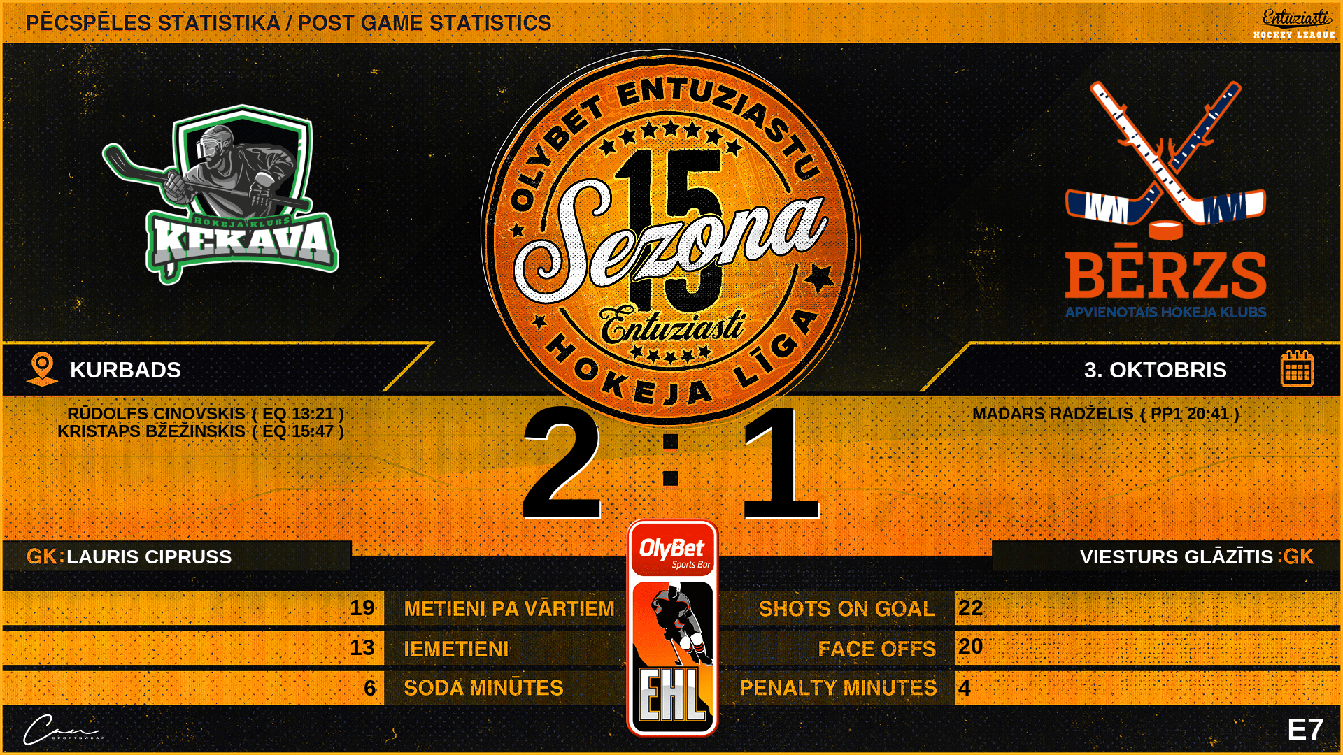 13:21 | ĶE3 | Vārti (EQ) | #93 Rūdolfs Cinovskis |
