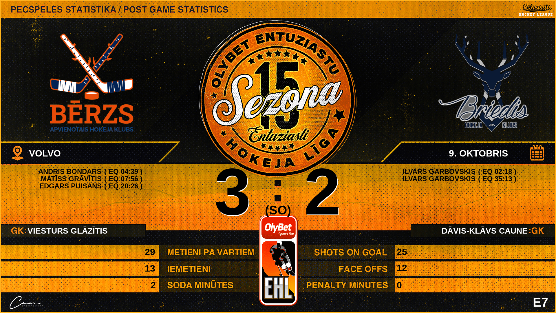 | 20:26 | AHK | Vārti (EQ) | #69 Dzintars Sibulis, piespēles: #86 Edgars Puisāns |