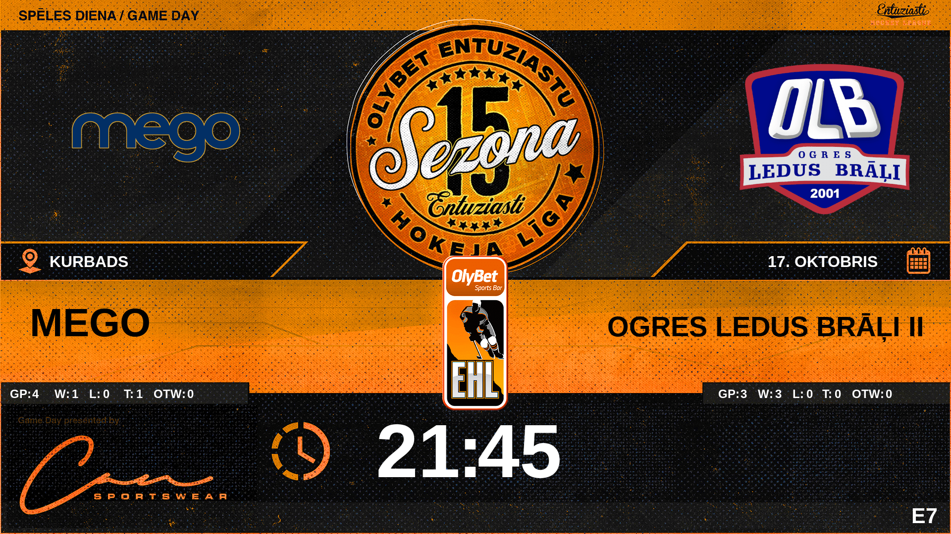 | 16:23 | MGO | Noraidījums | #77 Enriko Patriks Mills - Cross-checking (2 min) |