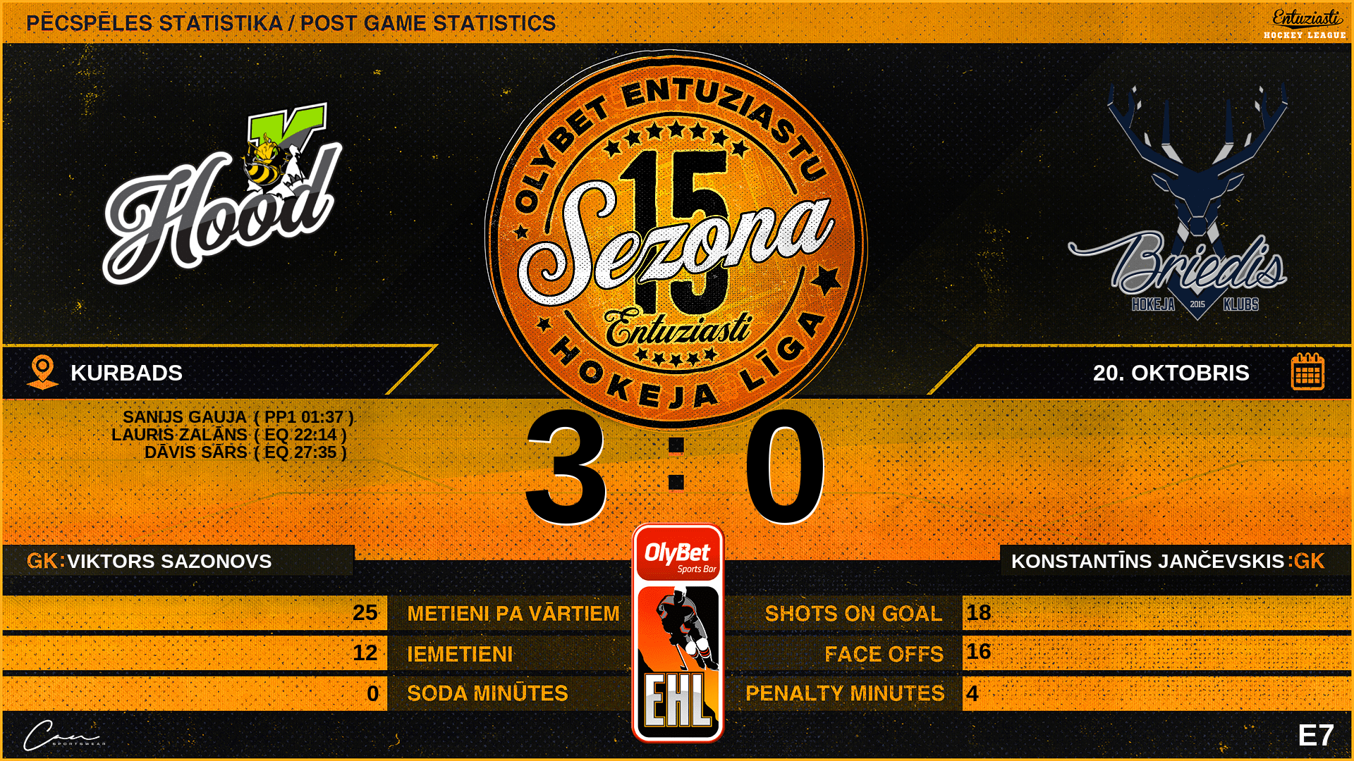 | 00:28 | BRD | Noraidījums | #1 Konstantīns Jančevskis - Delay of game (2 min) |
