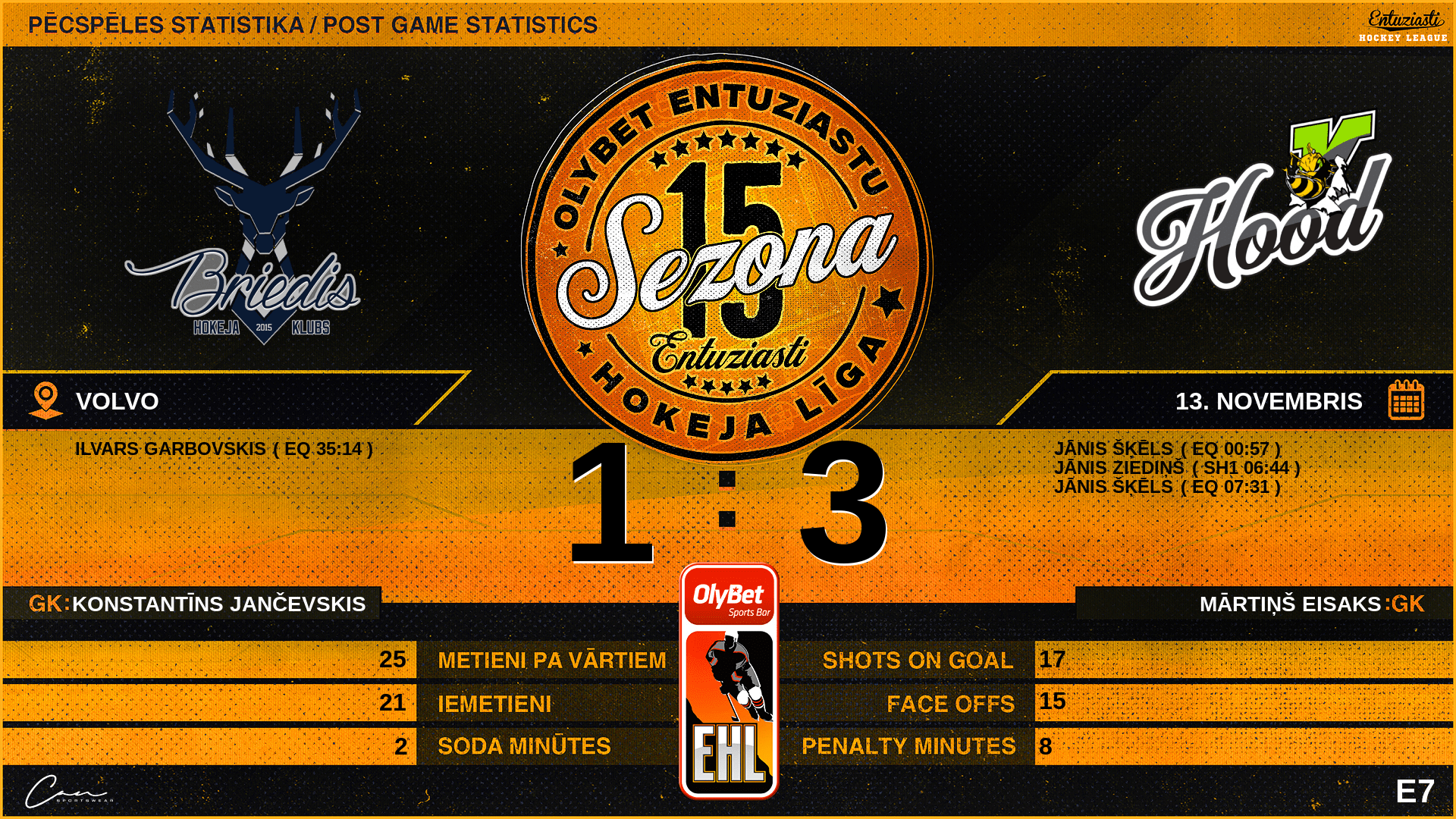 | 07:31 | KNG | Vārti (EQ) | #53 Jānis Šķēls, piespēles: #26 Dairis Bufals Vētra, #35 Sanijs Gauja |