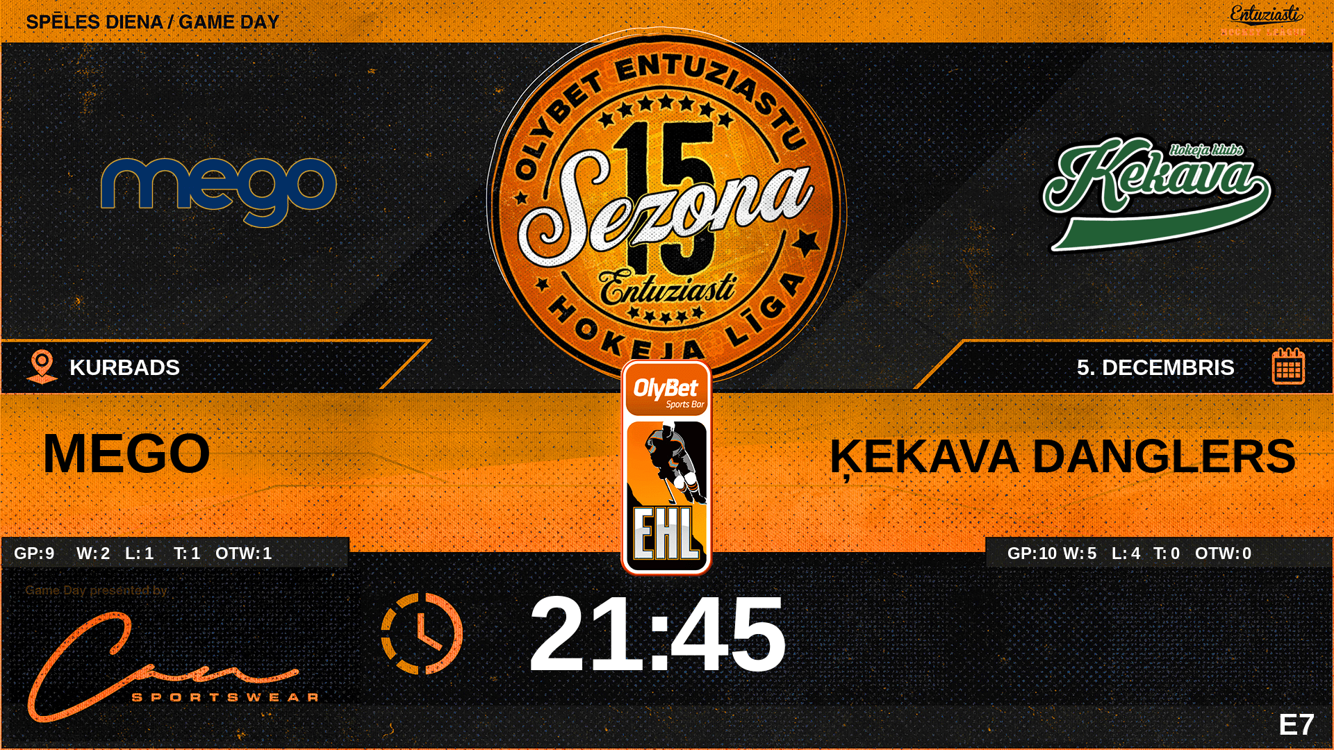 | 00:00 | ĶE3 | GK In | #2 Emīls Lielpēteris |