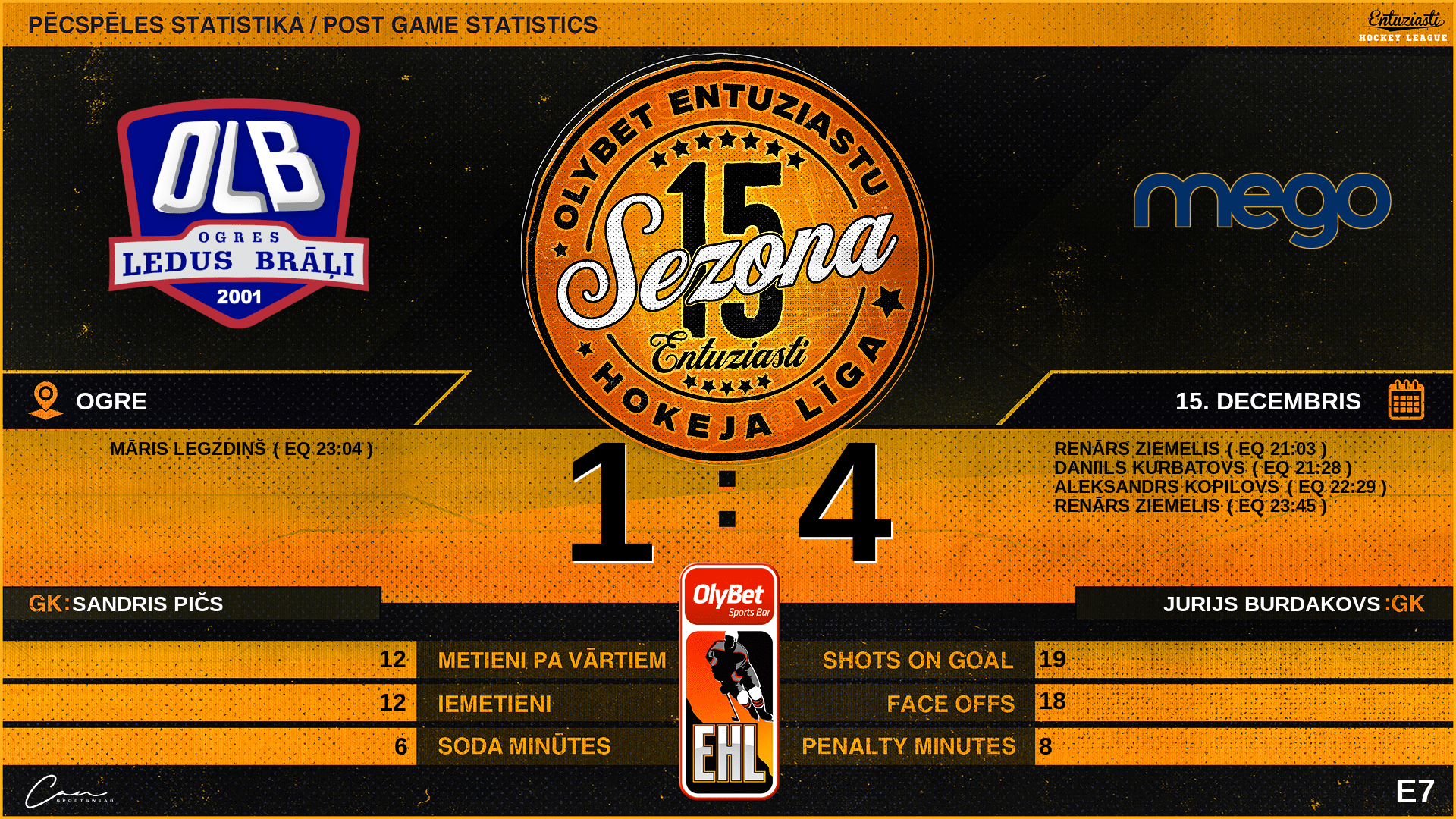 | 04:56 | MGO | Noraidījums | #77 Enriko Patriks Mills - Slashing (2 min) |