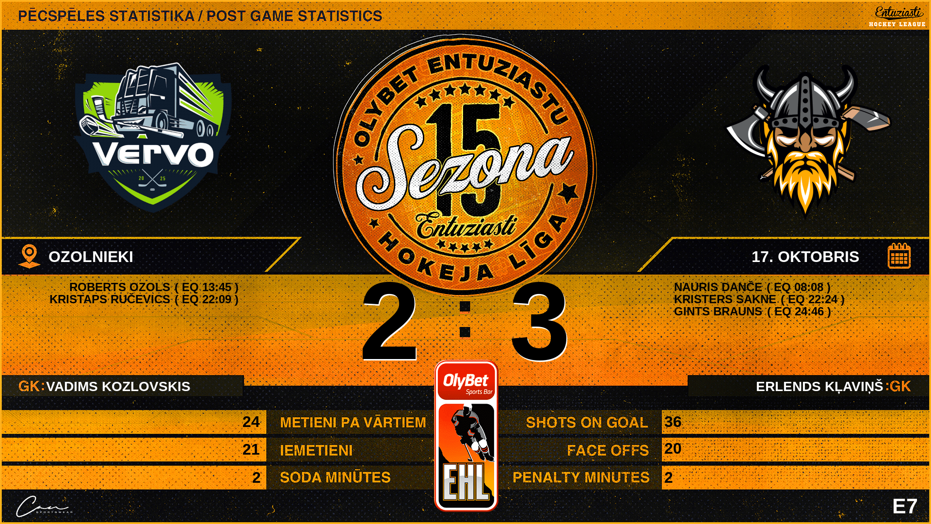 | 36:00 | VRV | GK Out | #1 Vadims Kozlovskis |