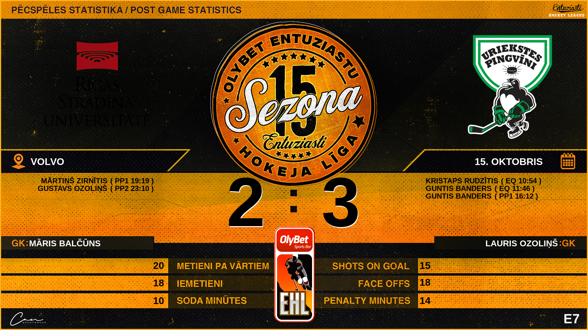 | 23:10 | RS2 | Vārti (PP2) | #3 Gustavs Ozoliņš |