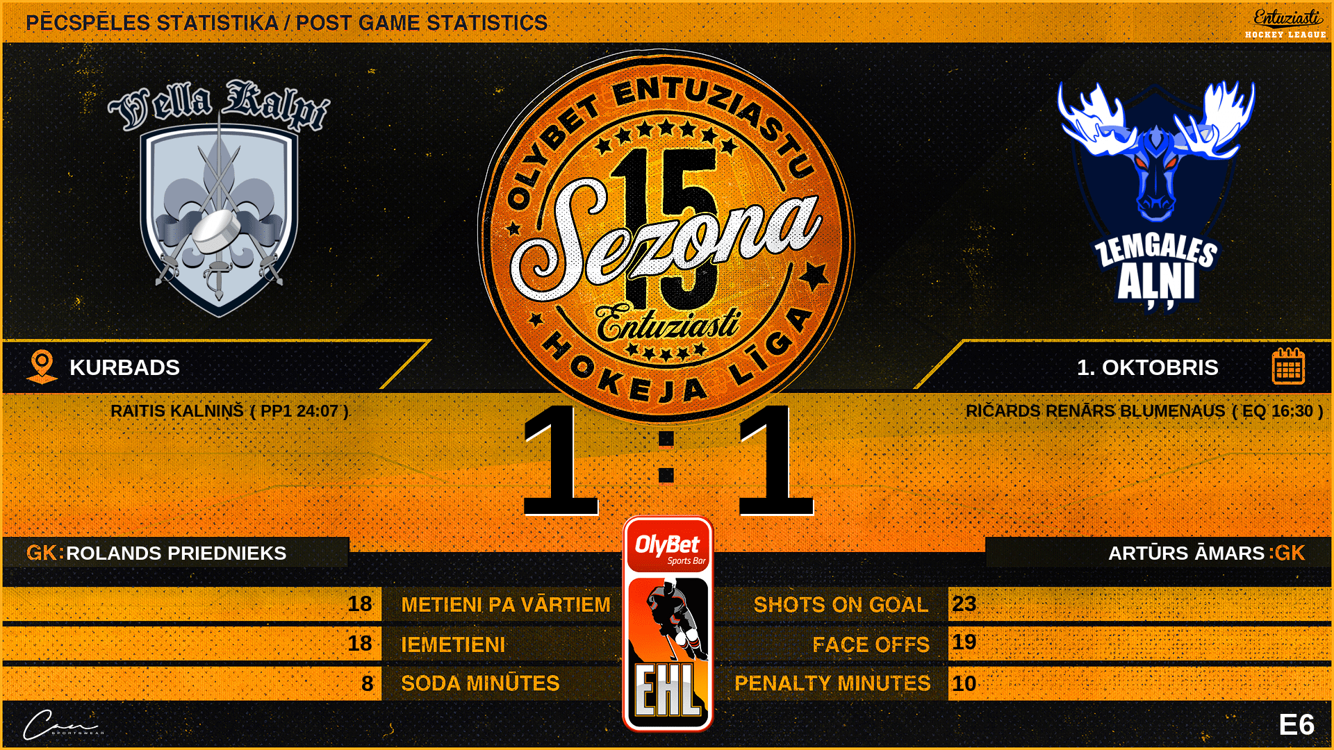 24:07 | VKA | Vārti (PP1) | #10 Raitis Kalniņš, piespēles: #14 Edgars Zeps, #22 Mārtiņš Brencis |