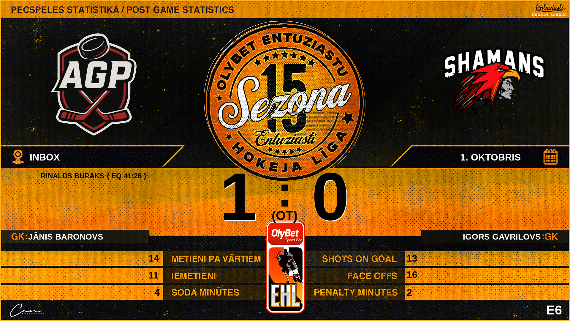 41:26 | AGP | GK Out | #31 Jānis Baronovs |