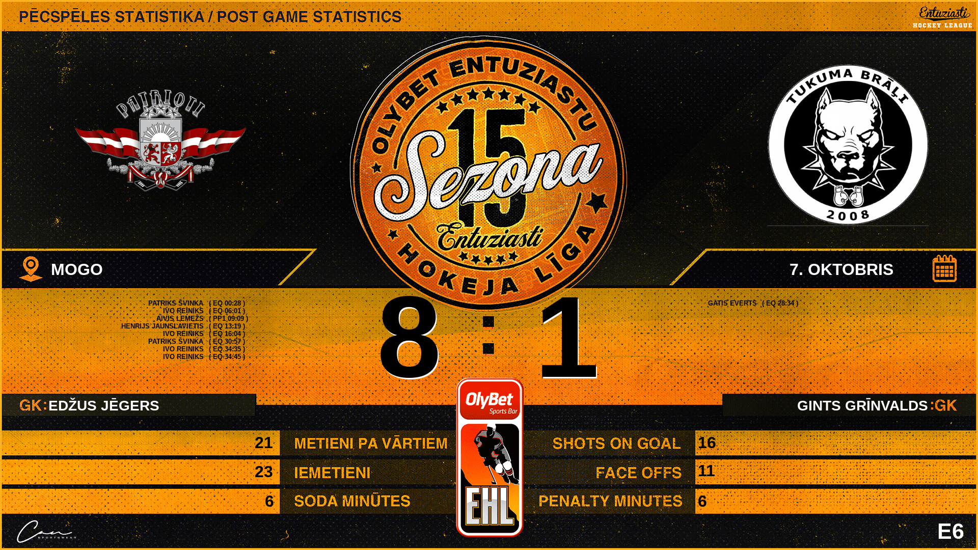 34:35 | PTR | Vārti (EQ) | #86 Ivo Reiniks, piespēles: #26 Henrijs Jaunslavietis, #96 Ansis Lasmanis |