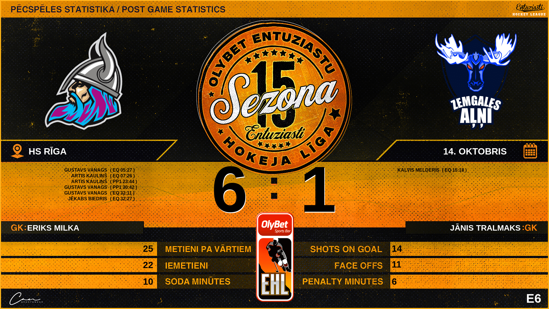 | 15:18 | ZGA | Vārti (EQ) | #7 Kalvis Melderis, piespēles: #71 Jānis Pūpols |
