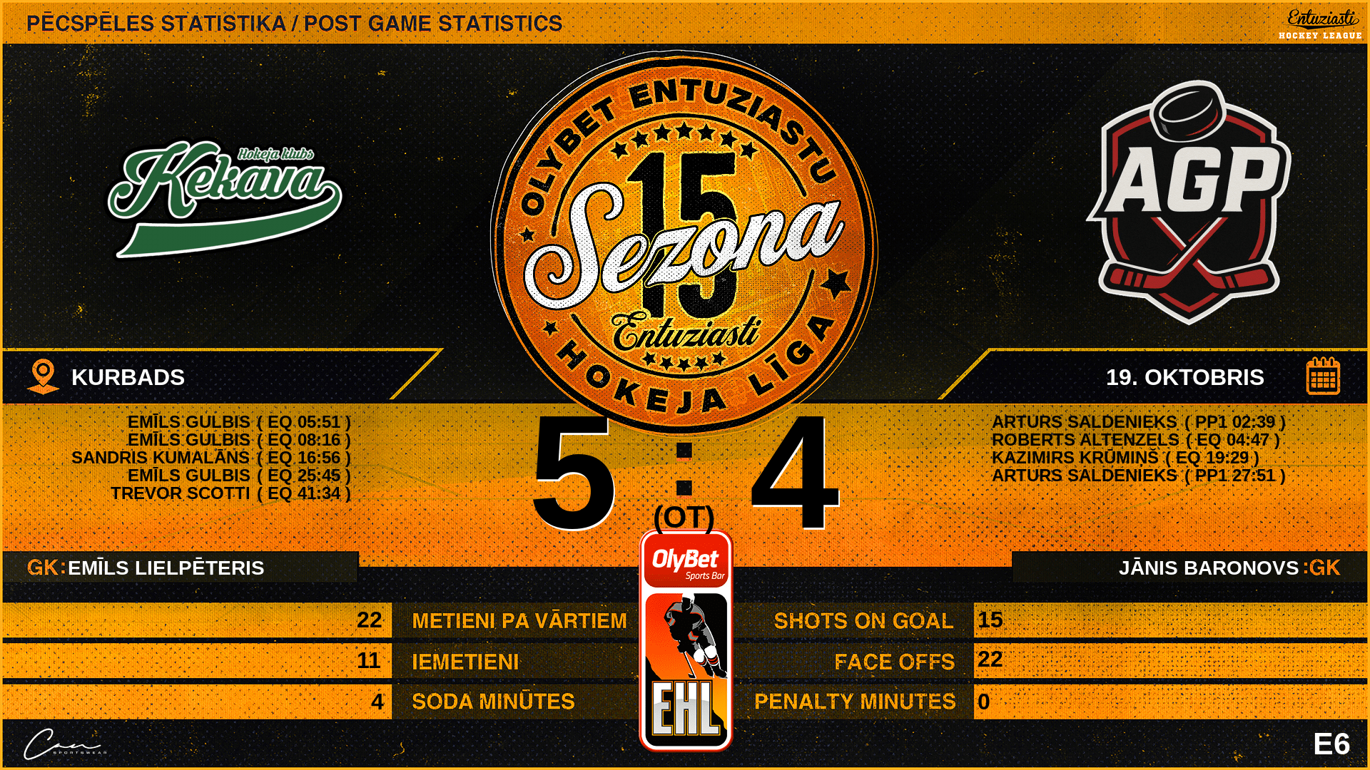 | 19:29 | AGP | Vārti (EQ) | #69 Kazimirs Krūmiņš |