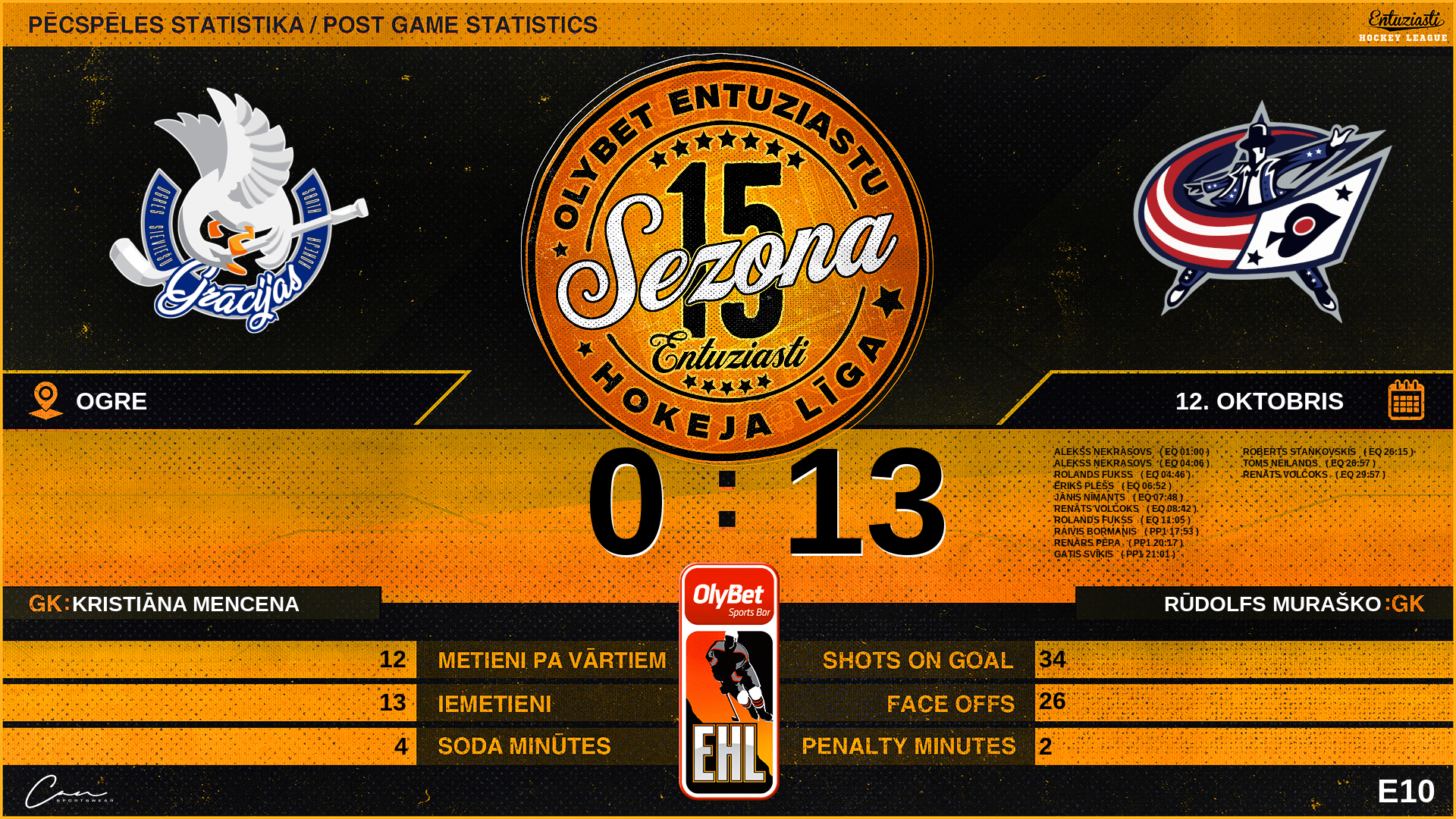 | 36:00 | BM2 | GK Out | #79 Rūdolfs Muraško |