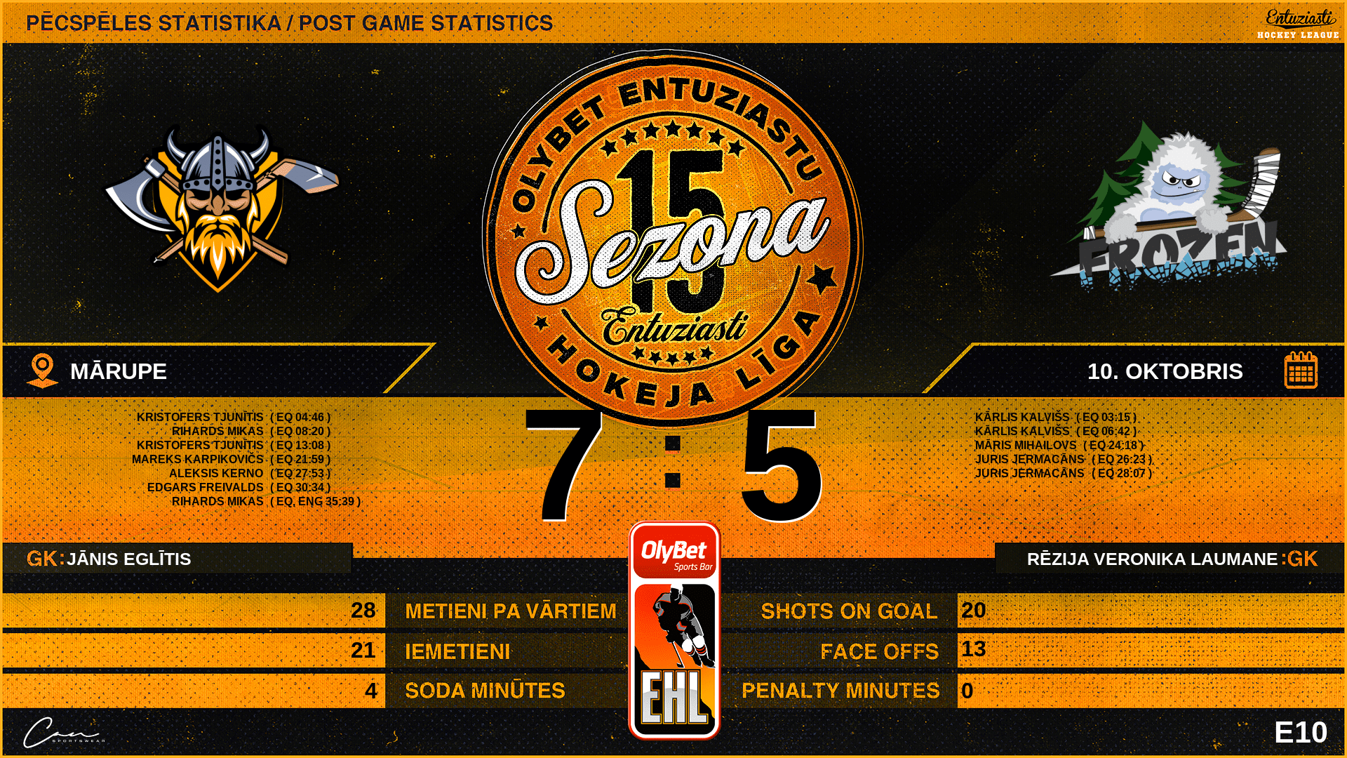 | 03:15 | FRZ | Vārti (EQ) | #74 Kārlis Kalvišs |