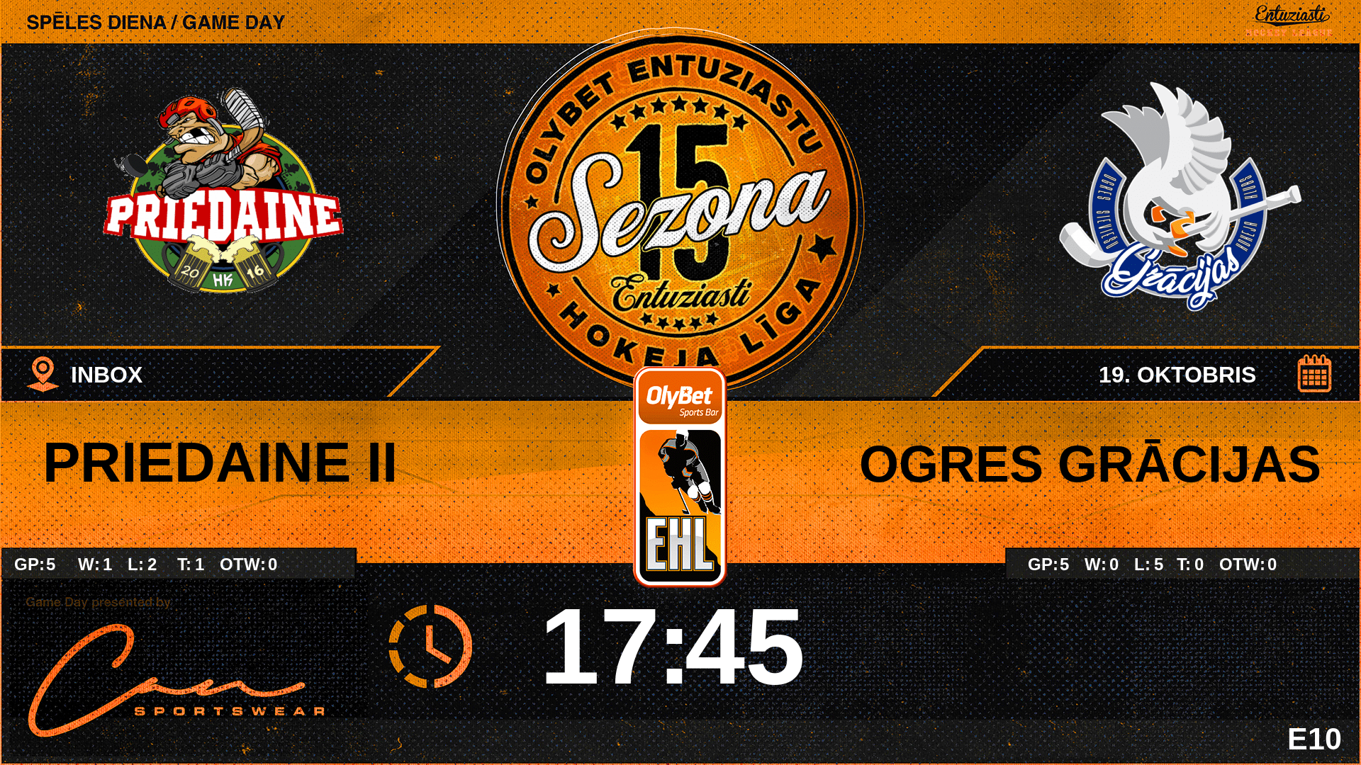 | 00:00 | PR2 | GK In | #1 Aleksandrs Galkins |