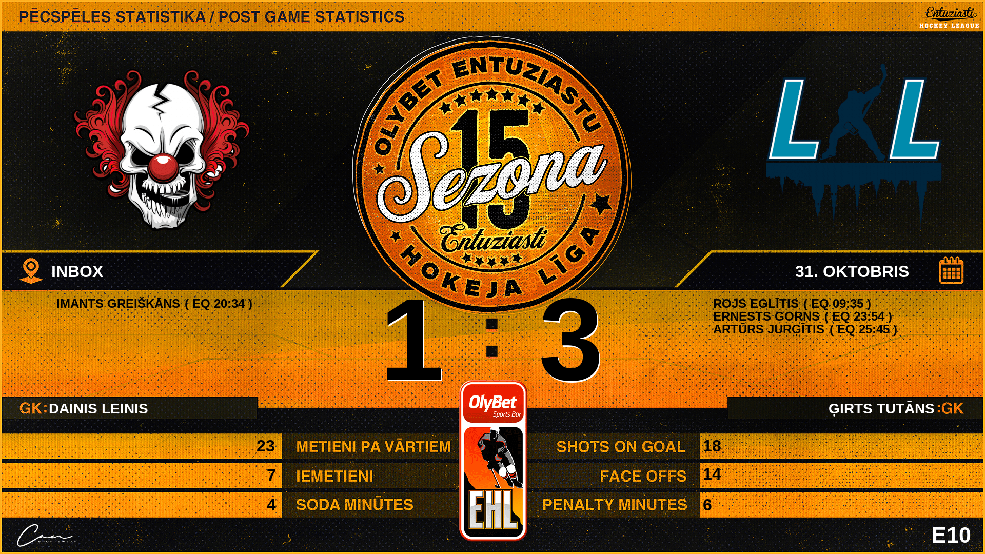 | 09:35 | LST | Vārti (EQ) | #69 Rojs Eglītis, piespēles: #76 Artūrs Jurģītis |