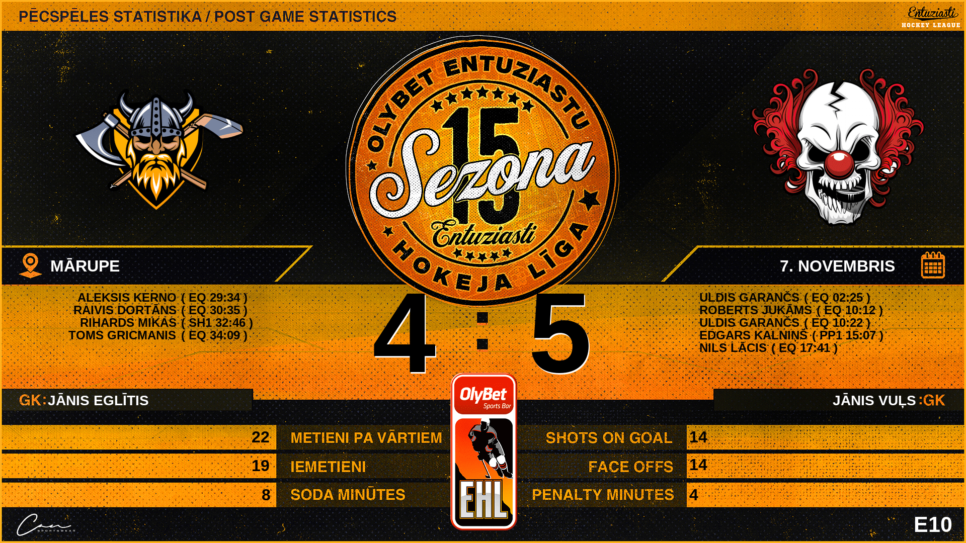 | 35:56 | VN4 | GK Out | #61 Jānis Eglītis |