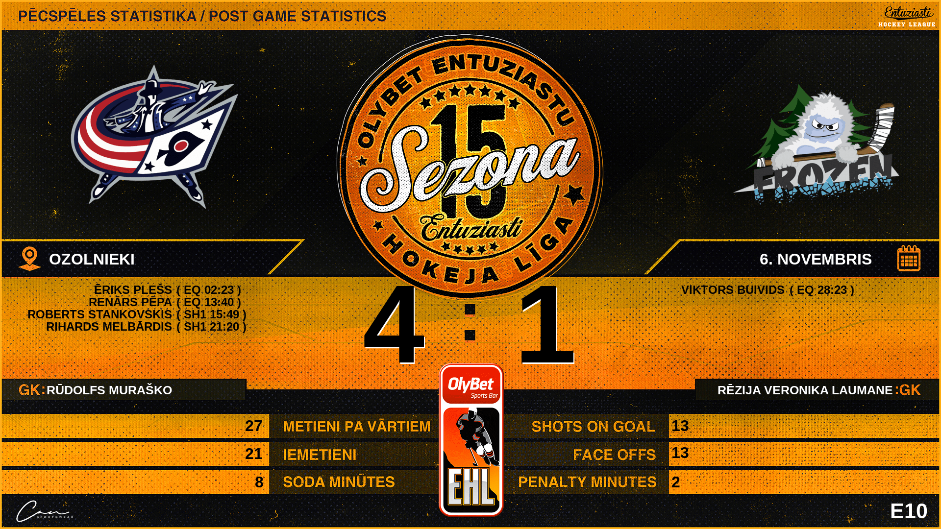 | 2 | Ēriks PLEŠS | F | 1 | 0 | 1 | 2 |