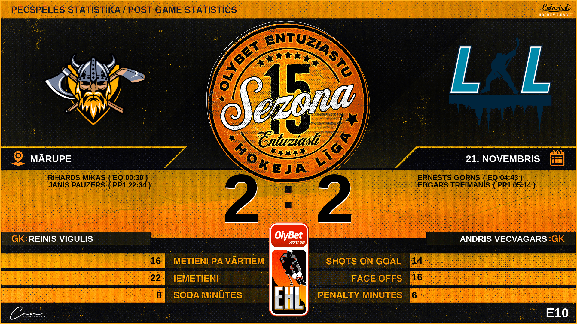 | 22:34 | VN4 | Vārti (PP1) | #83 Jānis Pauzers, piespēles: #50 Artis Bizuns |