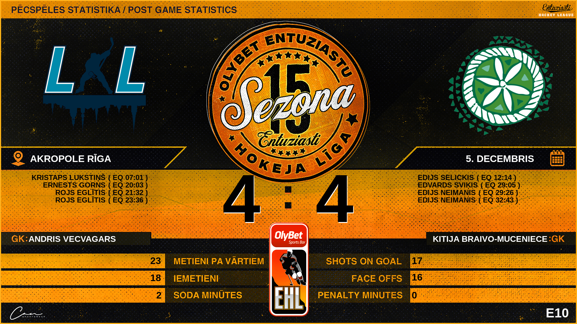 | 07:01 | LST | Vārti (EQ) | #92 Kristaps Lukstiņš |