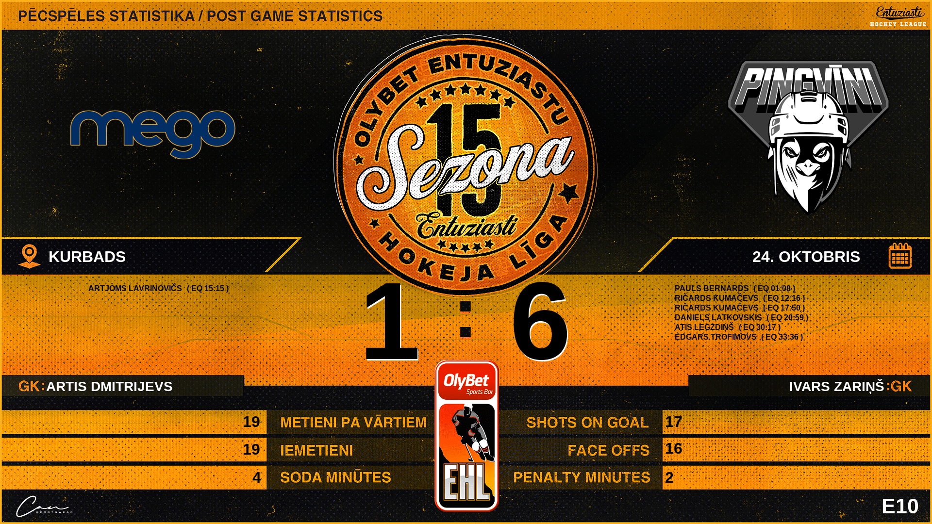| 33:36 | PNX | Vārti (EQ) | #71 Edgars Trofimovs, piespēles: #17 Jevgenijs Volobujevs, #26 Daniels Latkovskis |