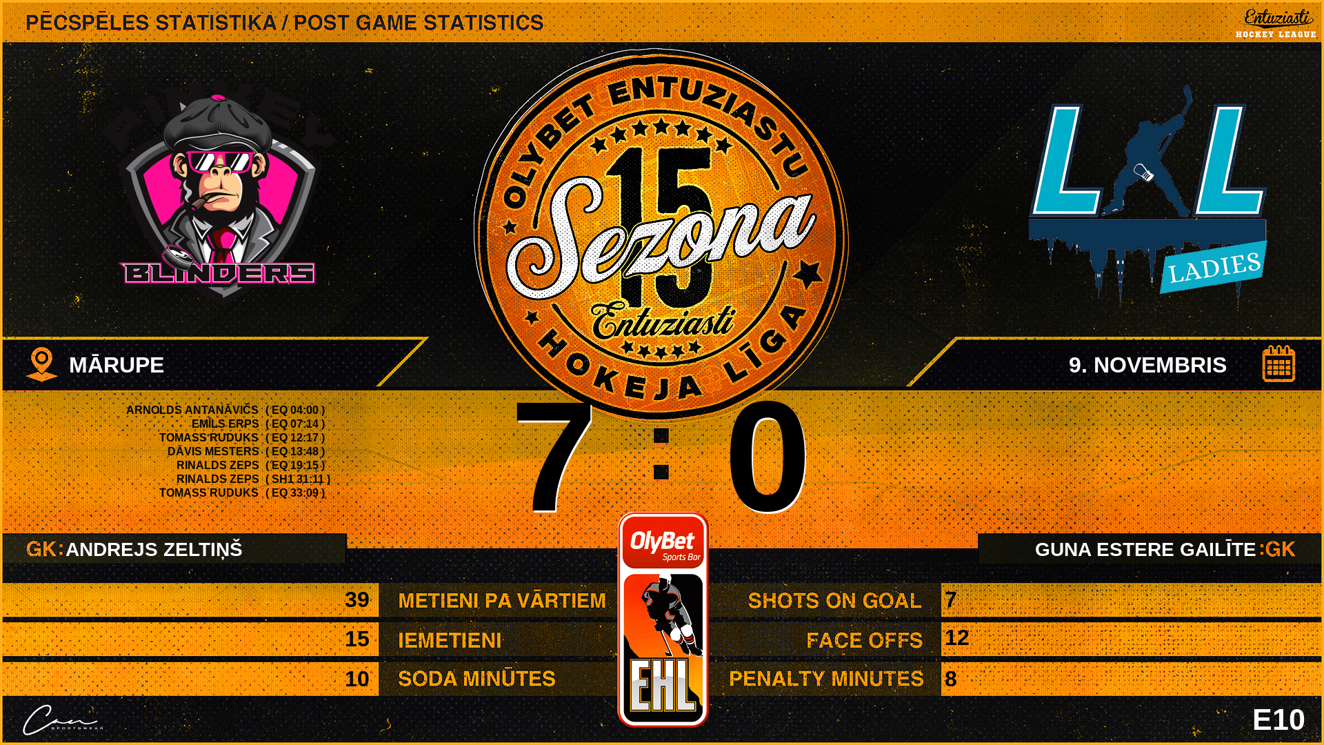 | 19:15 | PB2 | Vārti (EQ) | #23 Rinalds Zeps, piespēles: #50 Emīls Erps, #4 Dāvis Mesters |