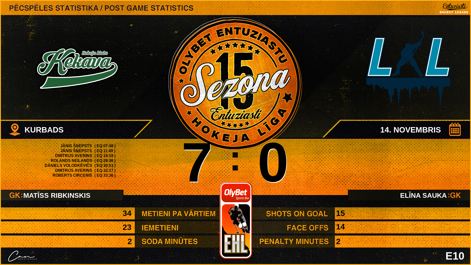 | 29:36 | ĶK5 | Vārti (EQ) | #36 Rolands Neilands, piespēles: #88 Jānis Šņepsts, #28 Dmitrijs Averins |