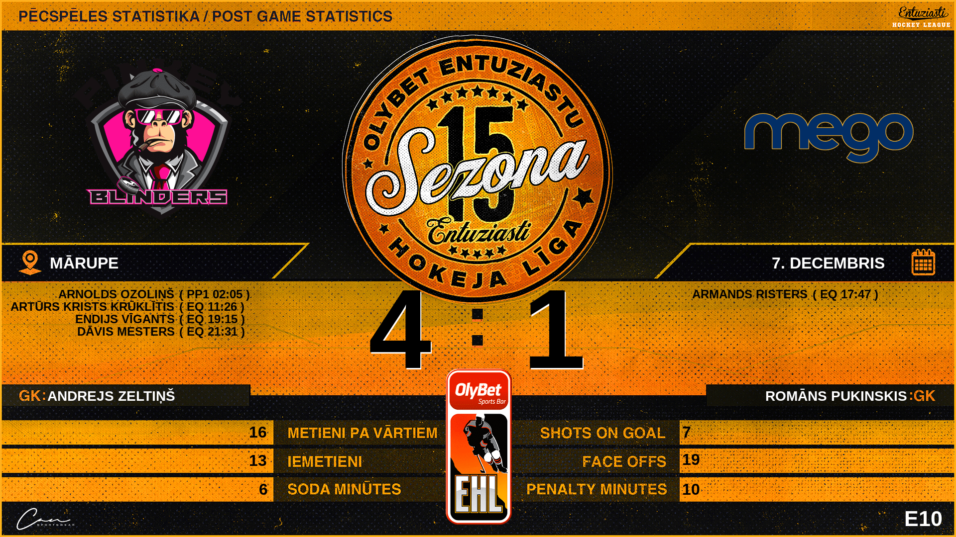 | 09:40 | MG2 | Noraidījums | #30 Romāns Pukinskis - Unsportsmanlike conduct (2 min) |