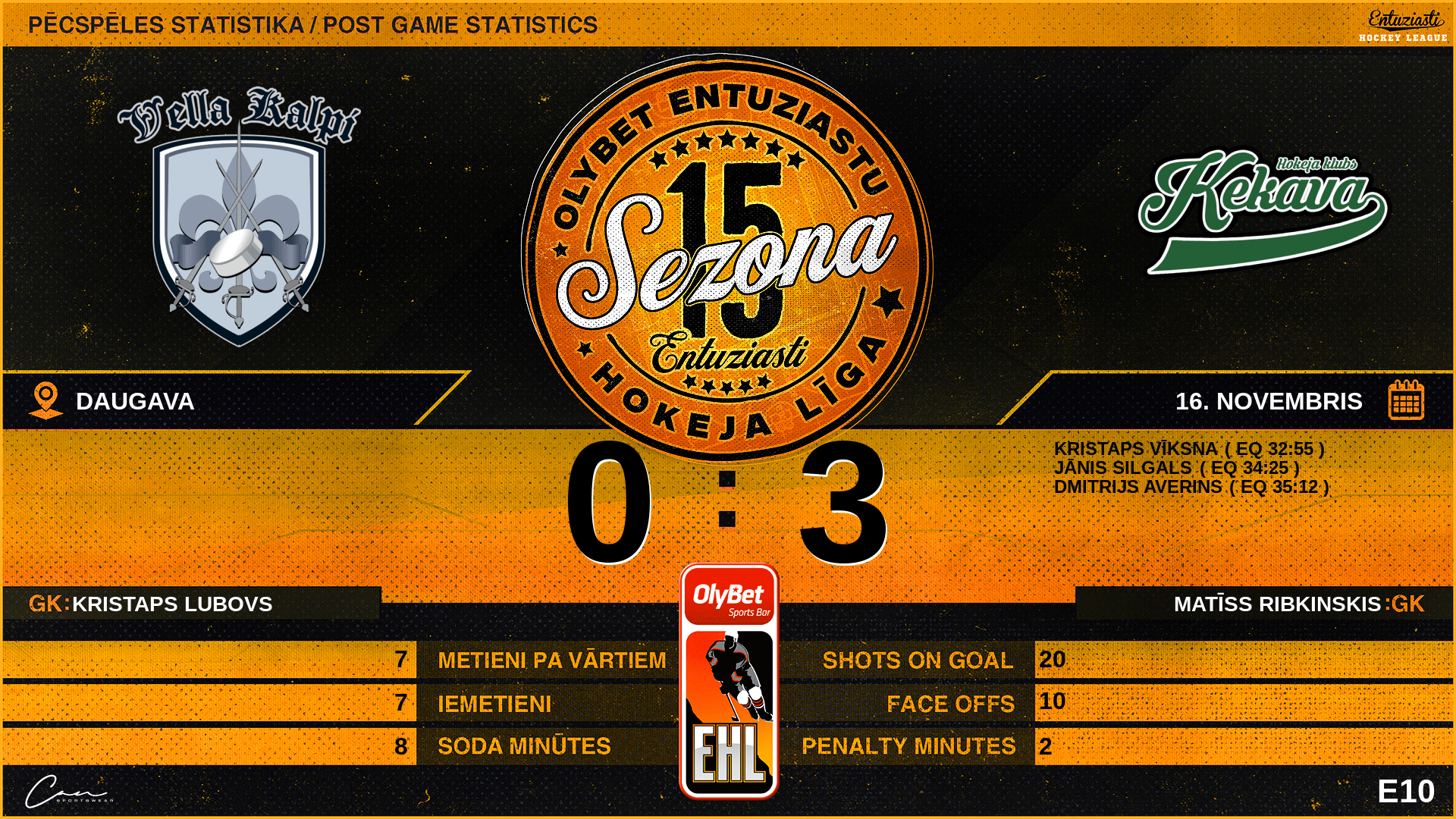 | 00:00 | VL3 | GK In | #2 Kristaps Lubovs |