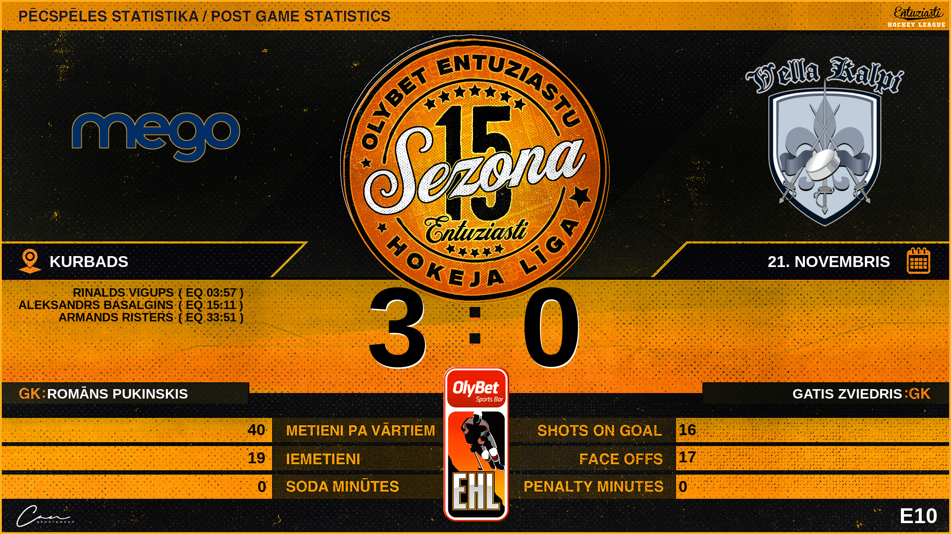 | 33:51 | MG2 | Vārti (EQ) | #4 Armands Risters, piespēles: #97 Rinalds Vigups |