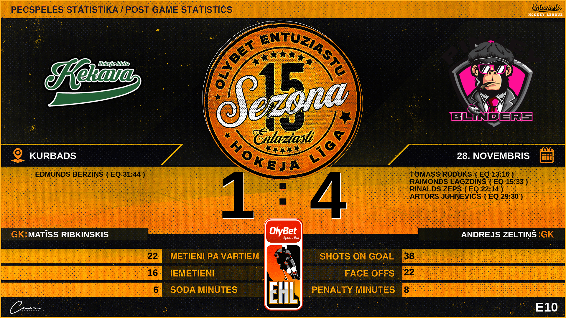| 22:14 | PB2 | Vārti (EQ) | #23 Rinalds Zeps, piespēles: #93 Aivis Broks |