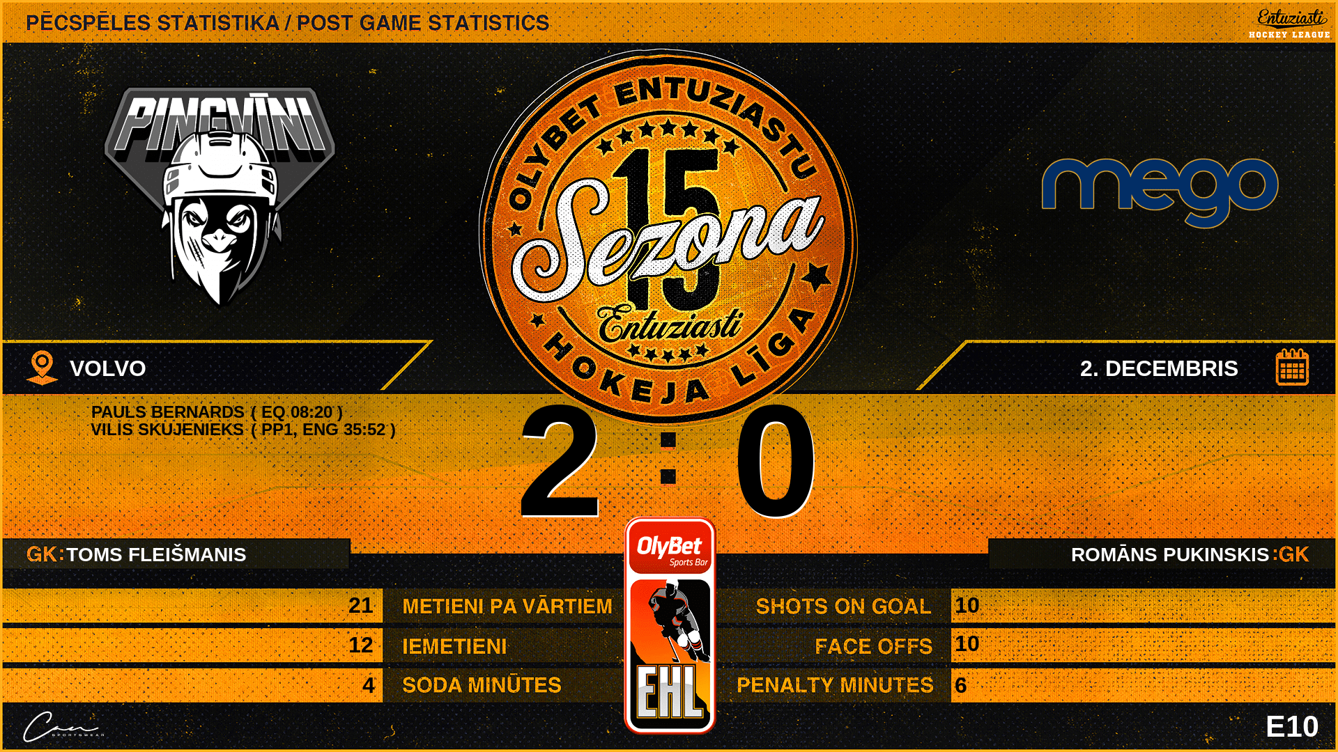 | 35:52 | PNX | Vārti (PP1, ENG) | #77 Vilis Skujenieks, piespēles: #34 Pauls Bernards |