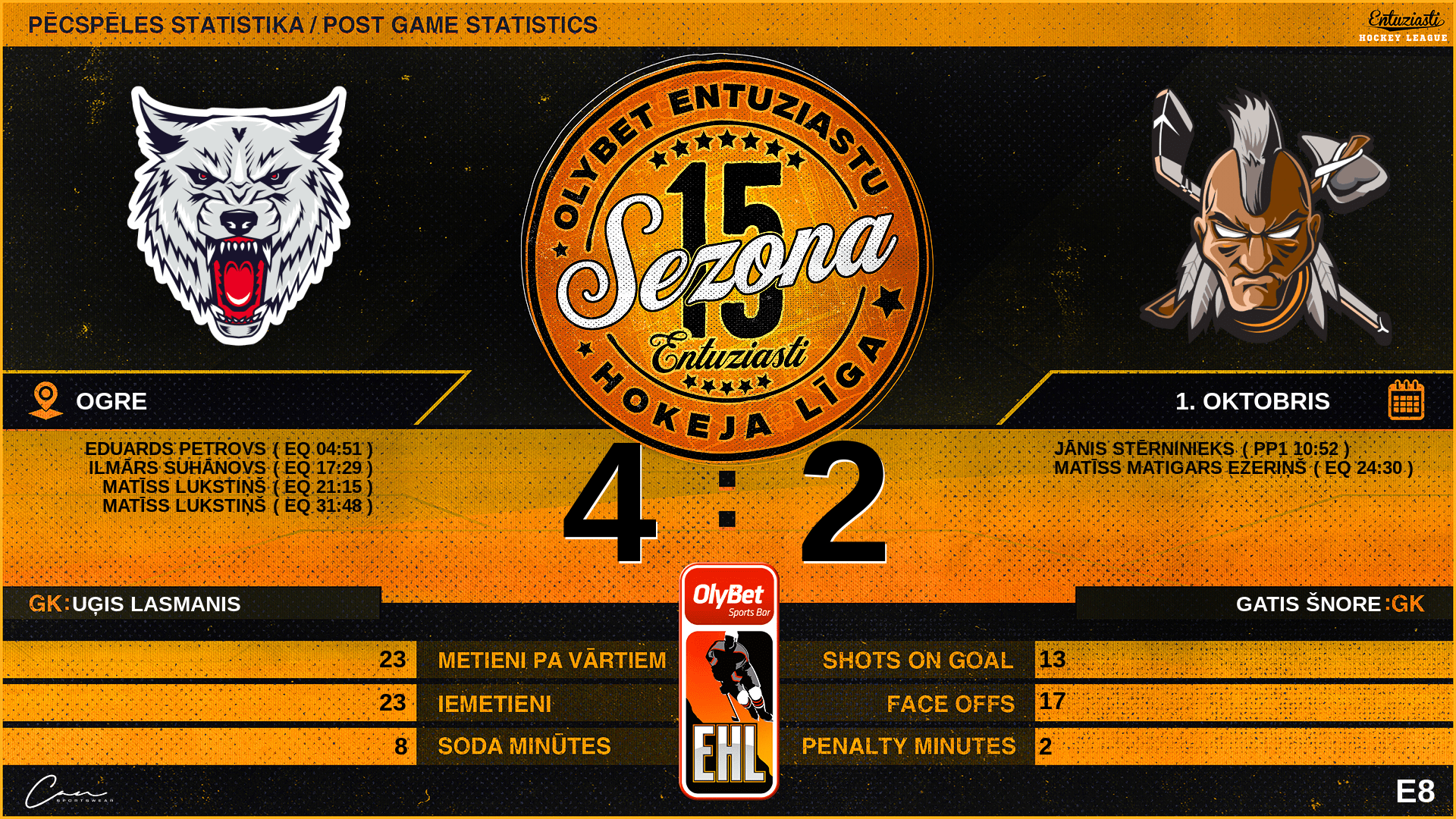 04:51 | VLV | Vārti (EQ) | #77 Eduards Petrovs, piespēles: #69 Armands Raudziņš, #28 Salvis Rambols |