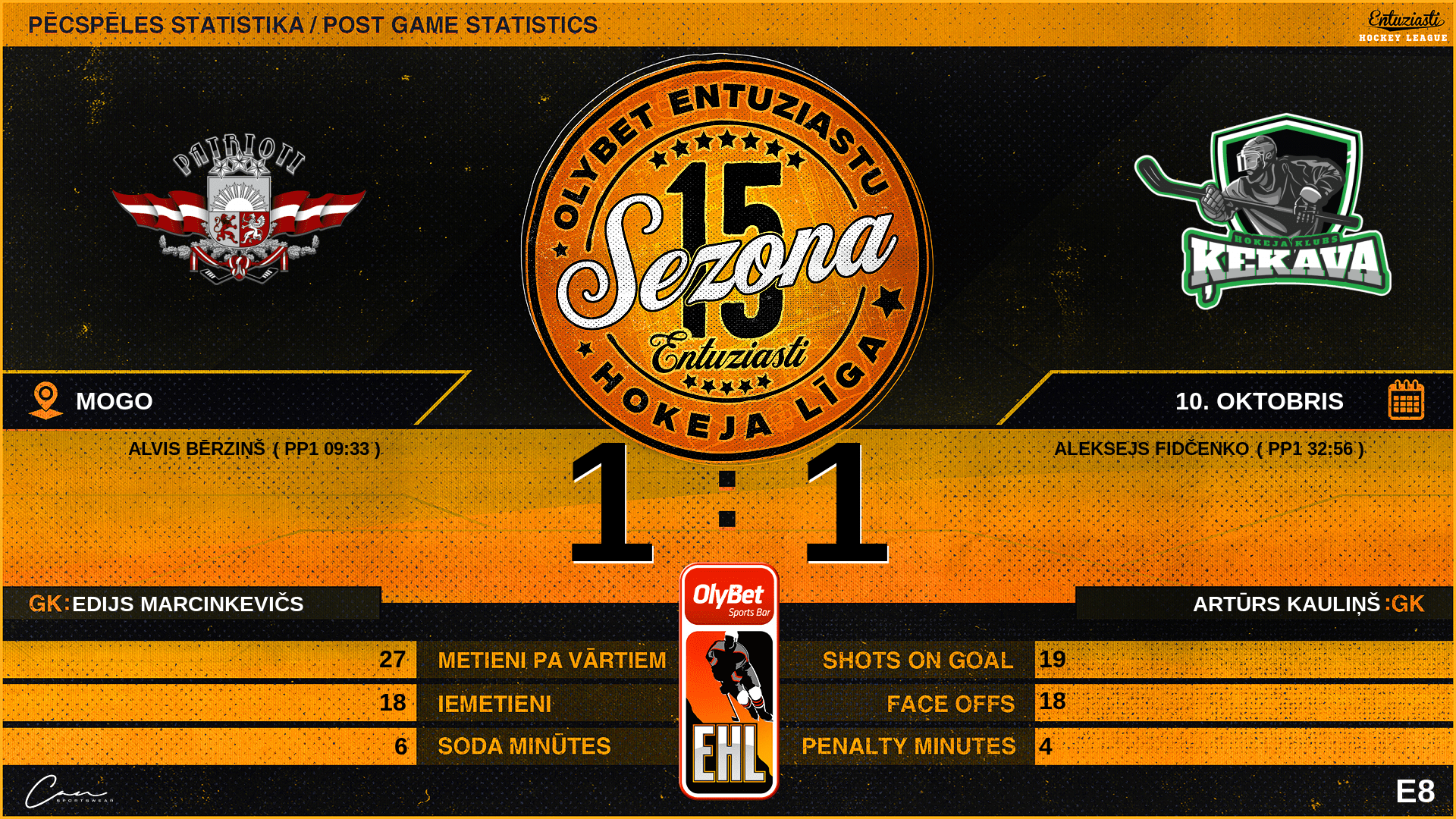 | 00:00 | PT2 | GK In | #1 Edijs Marcinkevičs |