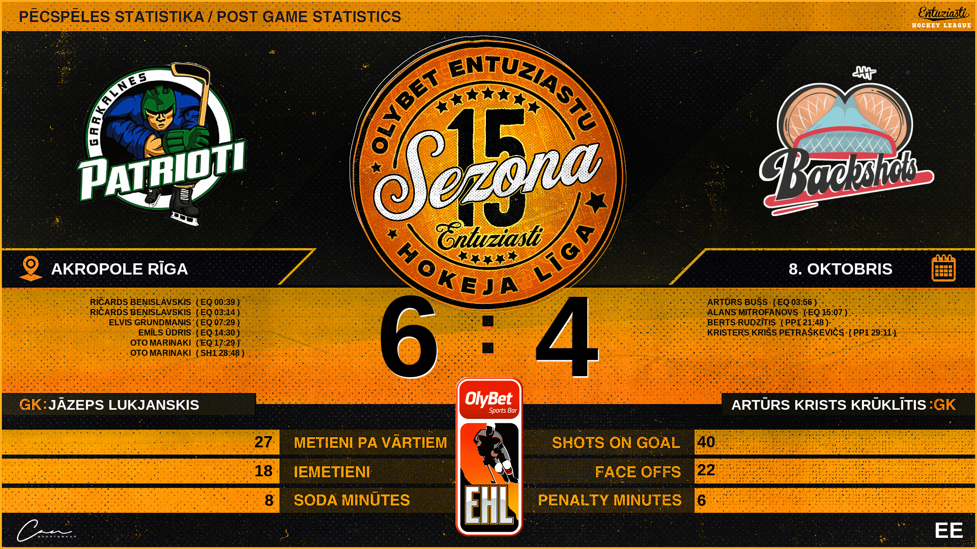 14:30 | GRK | Vārti (EQ) | #47 Emīls Ūdris, piespēles: #82 Mikita Jengašovs |