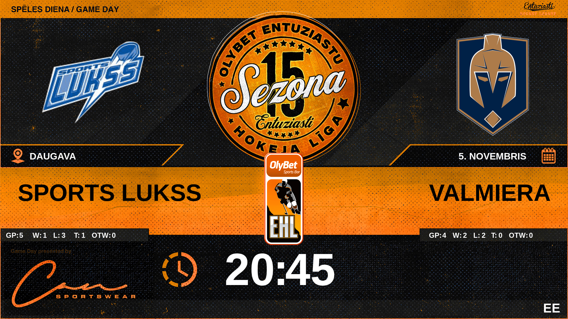 | 00:00 | VLM | GK In | #1 Markuss Žukovskis |