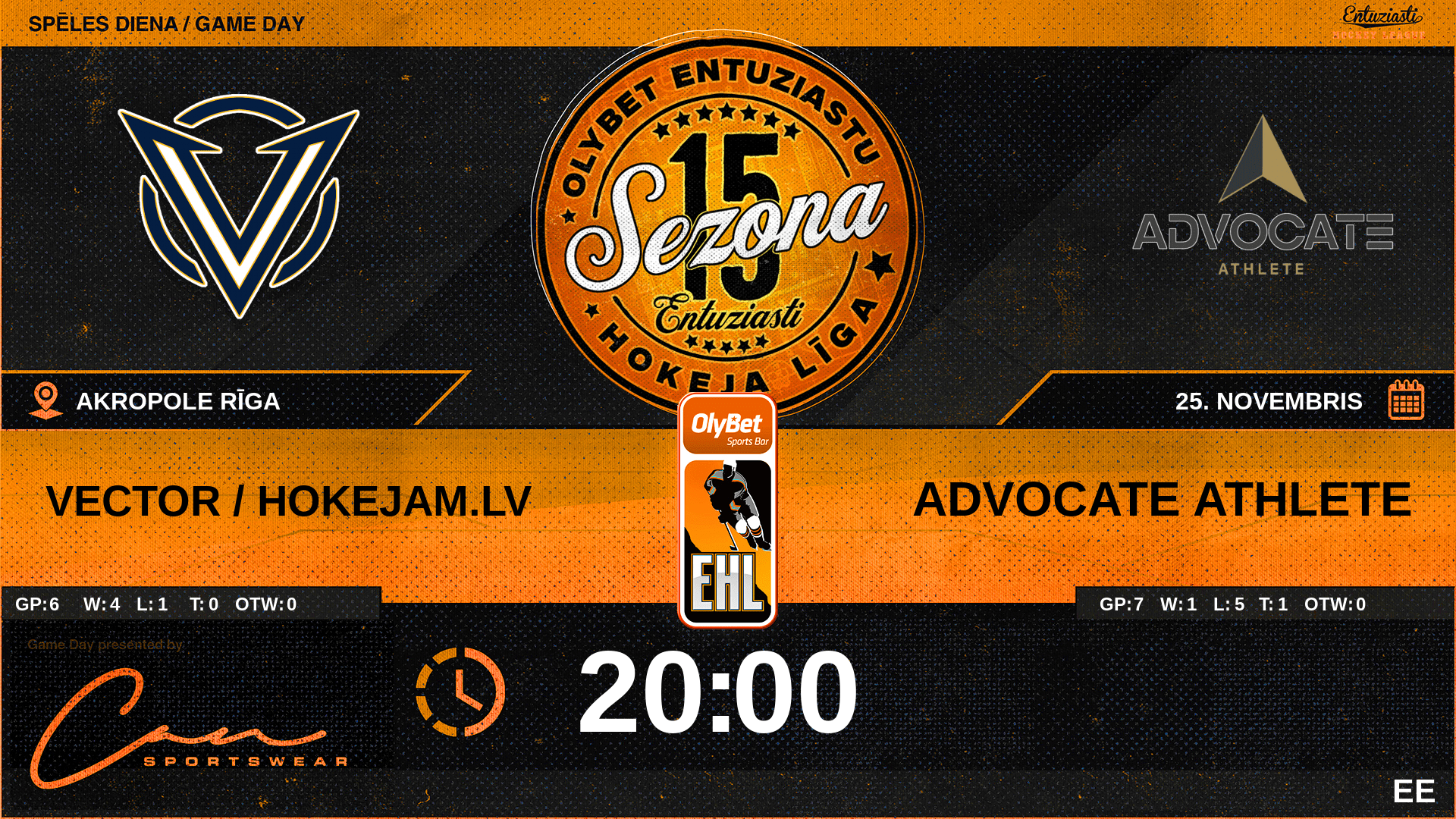 | 34:02 | VCT | Vārti (EQ) | #13 Markuss Priedītis, piespēles: #28 Kārlis Gustavs Logins, #7 Edgars Adrians Kazaks |