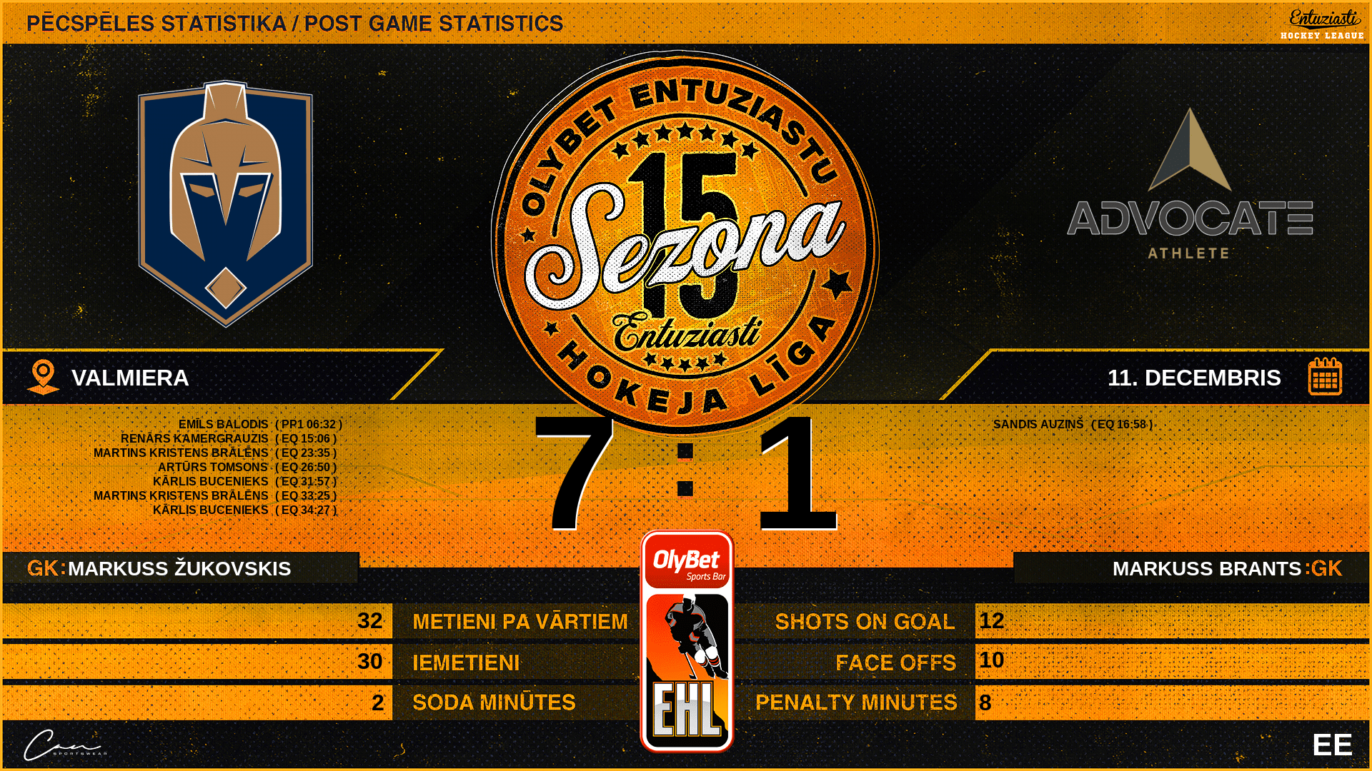 | 36:00 | VLM | GK Out | #1 Markuss Žukovskis |