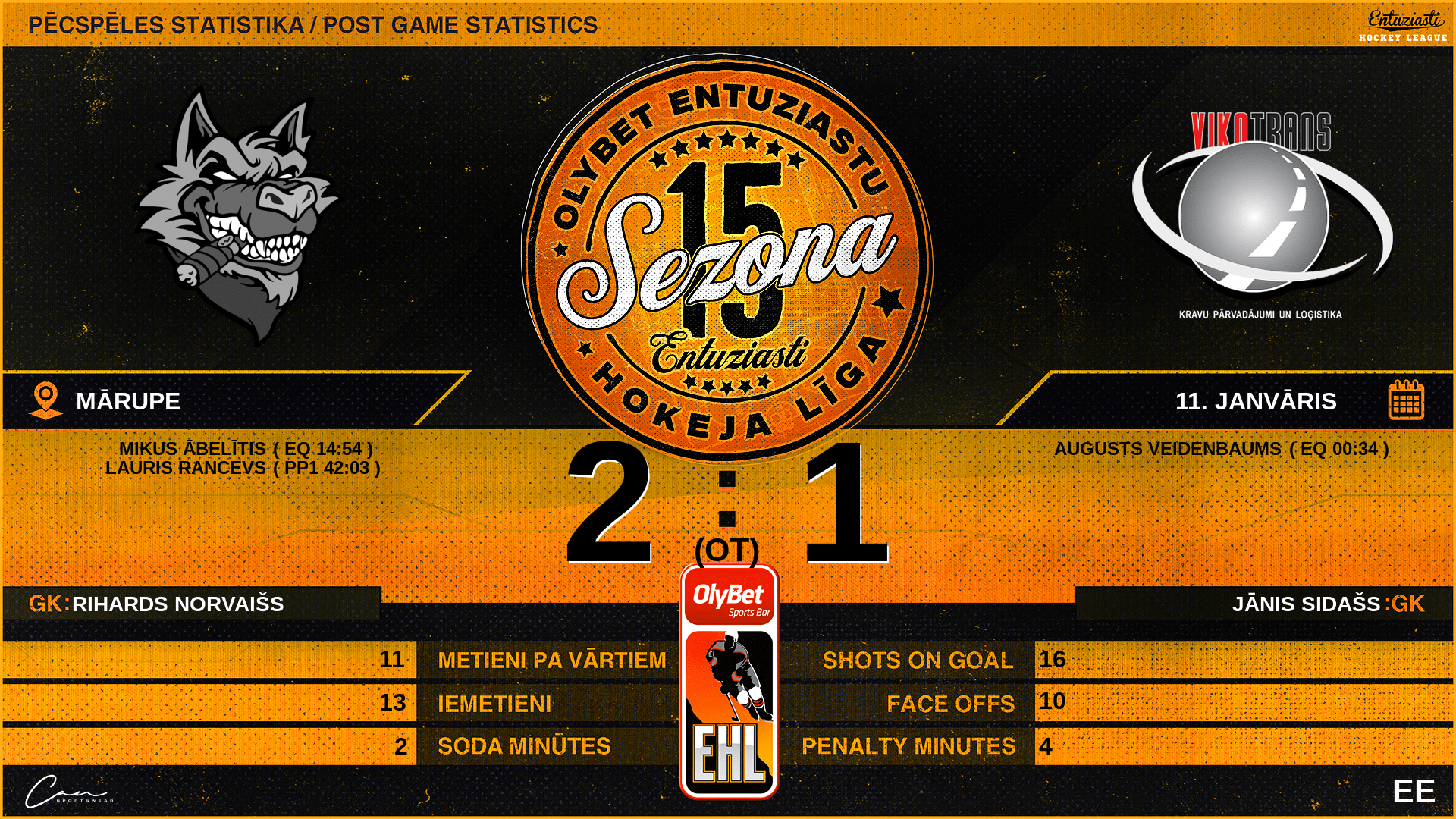 | 14:54 | WOL | Vārti (EQ) | #5 Mikus Ābelītis, piespēles: #21 Kārlis Reinis Štolcs, #20 Ričards Groskops |