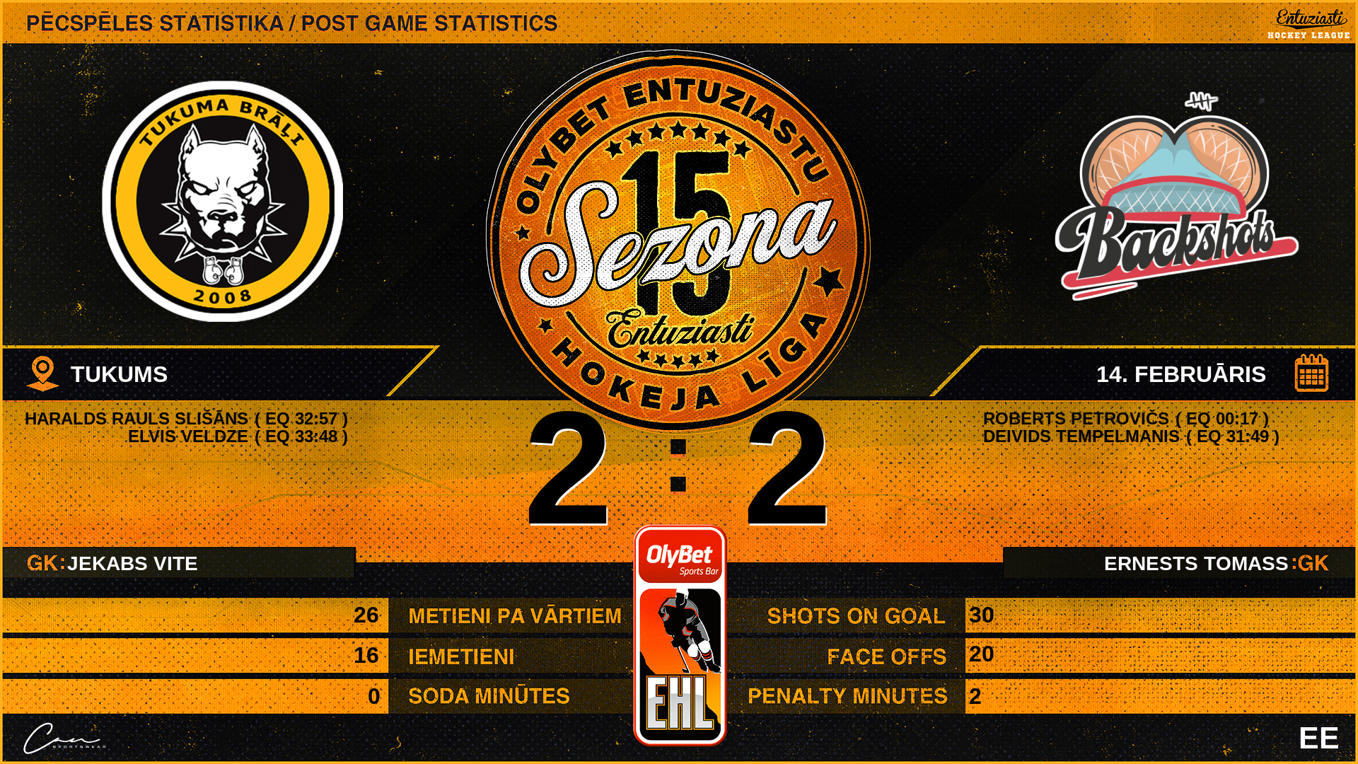 | 32:57 | TMB | Vārti (EQ) TMB 1 : 2 TRV | #25 Haralds Rauls Slišāns, piespēles: #33 Elvis Kaimiņš, #98 Rainers Dārziņš |