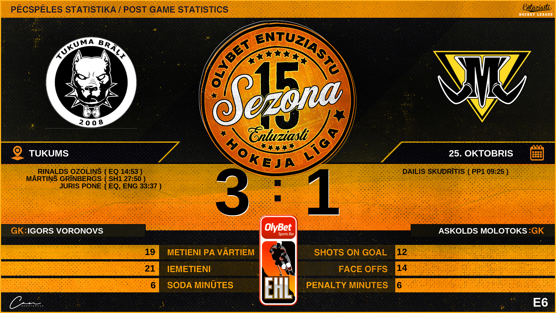 | 19:35 | MTH | Noraidījums | #20 Askolds Molotoks - Cross-checking (2 min) |